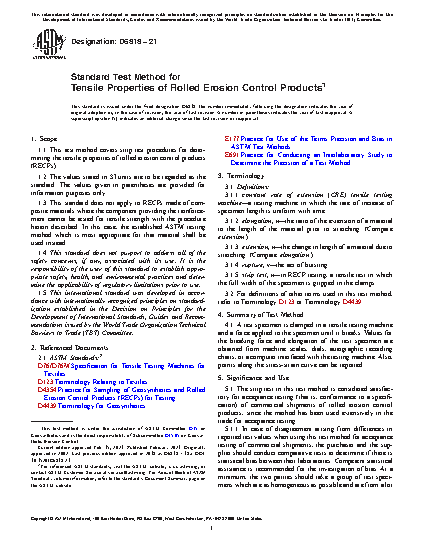 1.3 This standard does not apply to RECPs made of composite materials where the component providing the reinforcement cannot be tested for tensile strength with the procedure herein described. In this case, the established ASTM testing method which is most appropriate for that material shall be used instead.