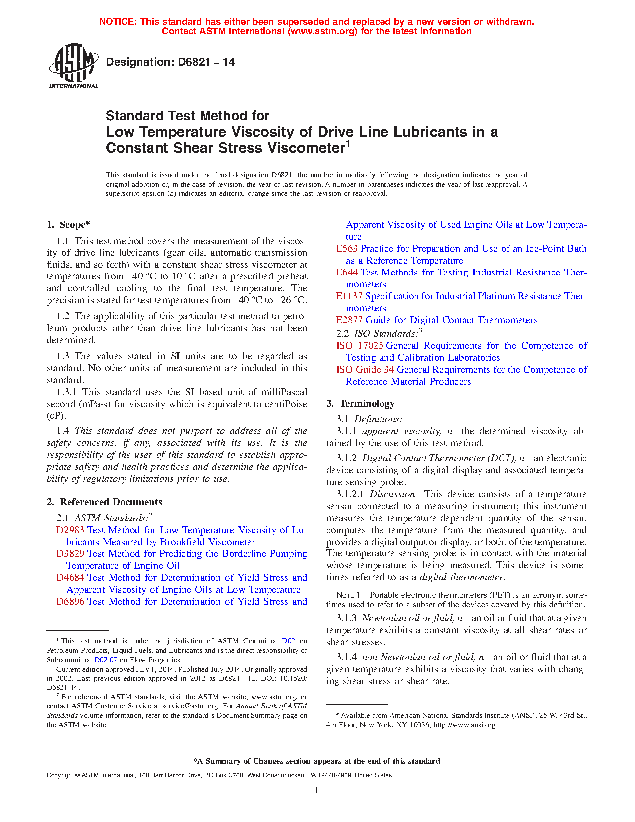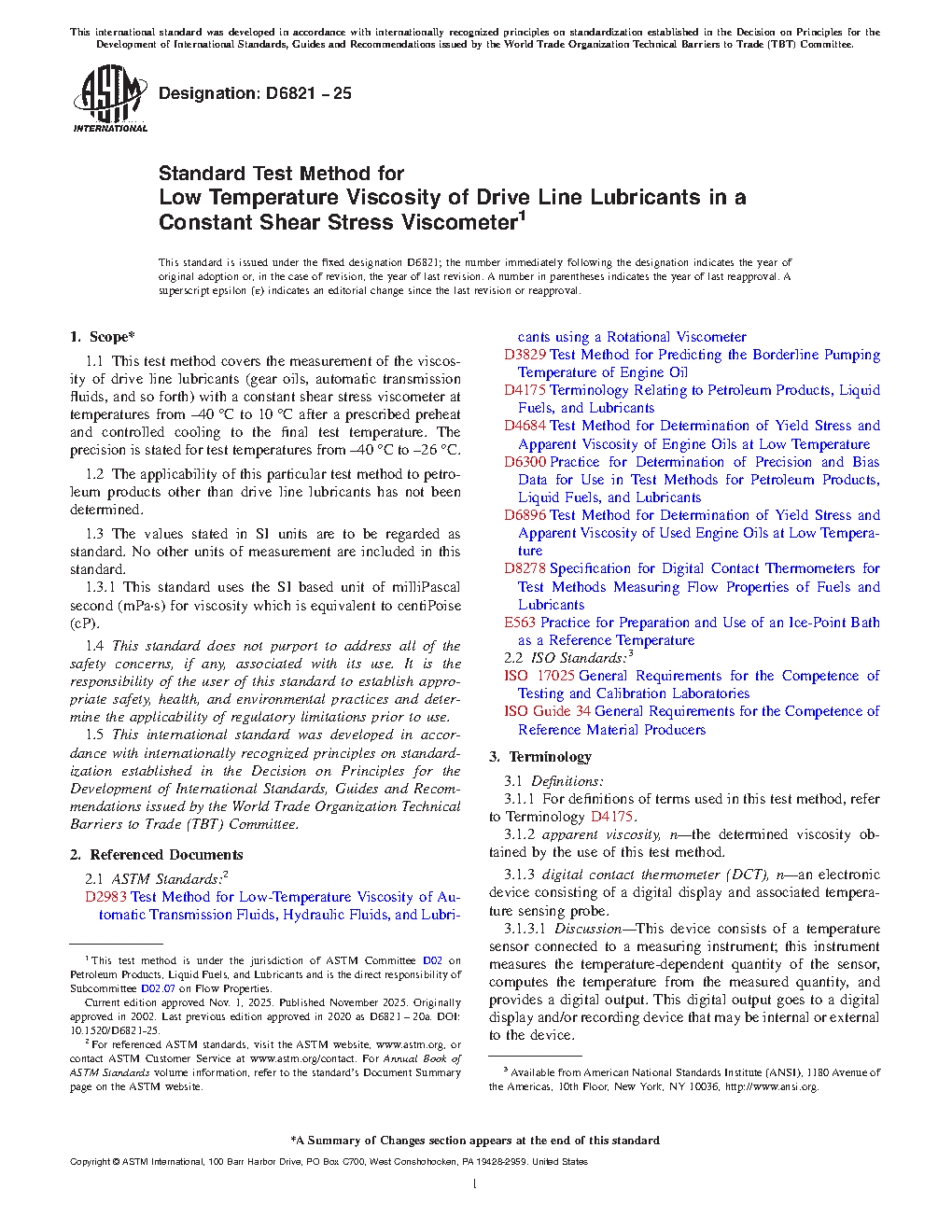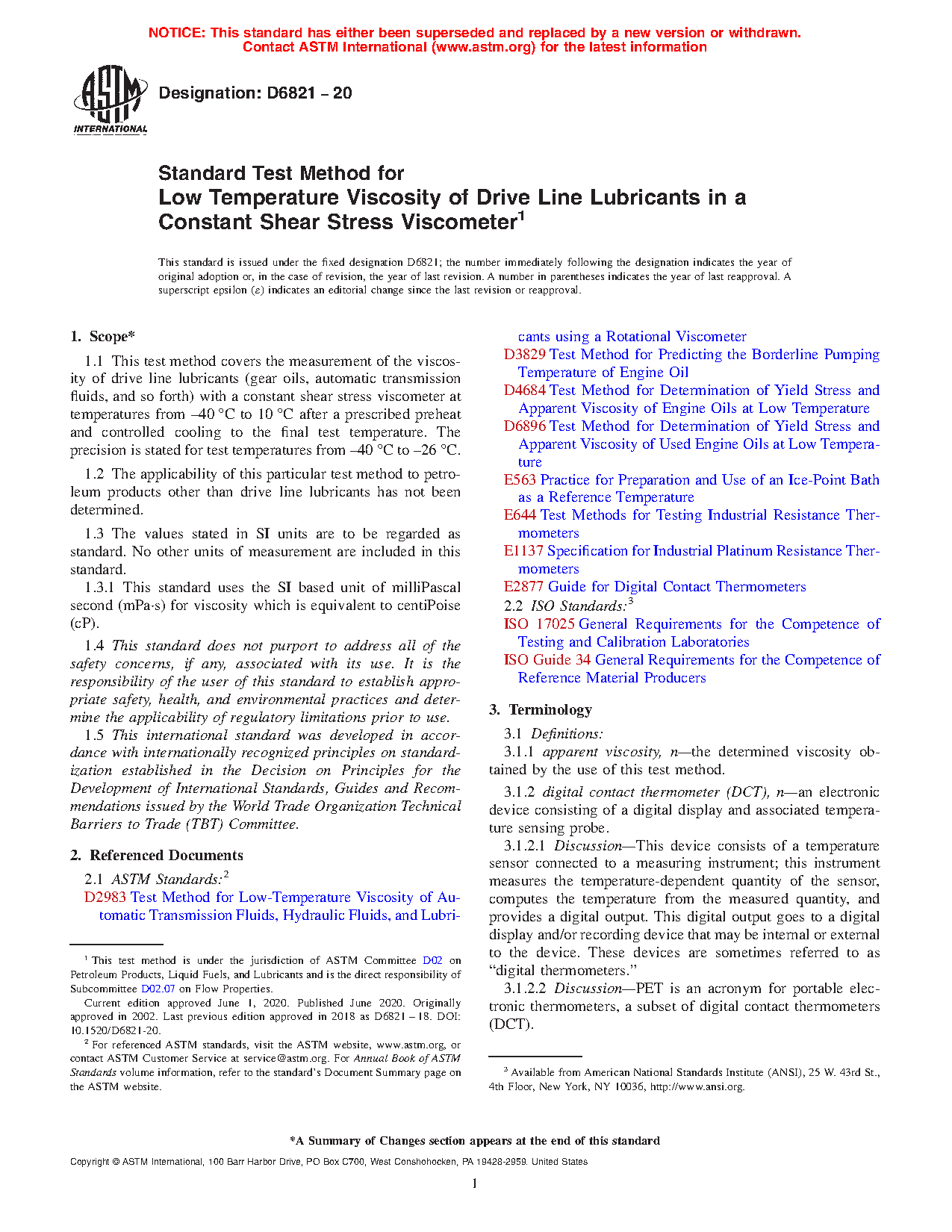 1.1 This test method covers the measurement of the viscosity of drive line lubricants (gear oils, automatic transmission fluids, and so forth) with a constant shear stress viscometer at temperatures from –40 °C to 10 °C after a prescribed preheat and controlled cooling to the final test temperature. The precision is stated for test temperatures from –40 °C to –26 °C.