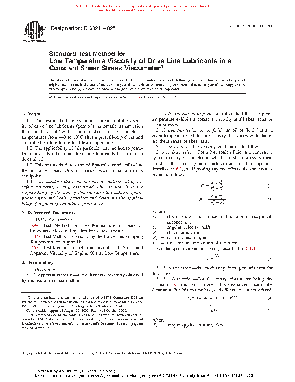 5.3 The results of this test procedure correlate with the viscometric measurements obtained in Test Method D2983.4 The correlation obtained is: