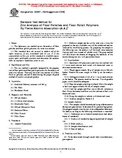 Standard Test Method for Zinc Analysis of Floor Polishes and Floor Polish Polymers By Flame Atomic Absorption (A.A.)