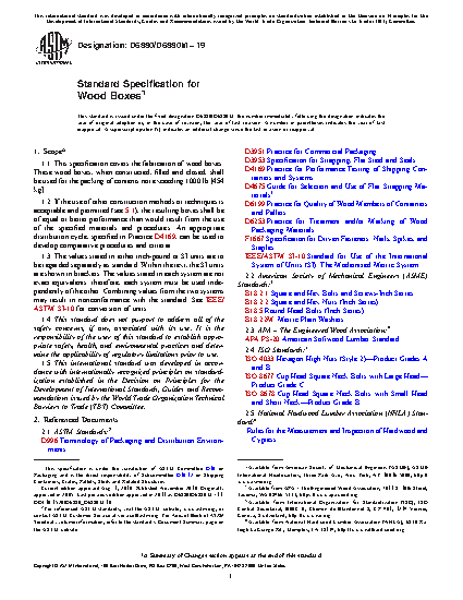 1.1 This specification covers the fabrication of wood boxes. These wood boxes, when constructed, filled and closed, shall be used for the packing of contents not exceeding 1000 pounds [454 kg].