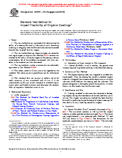 5.1 Coatings attached to substrates are subjected to damaging impacts during the manufacture of articles and their use in service. This impact resistance practice has been found to be useful in predicting the performance of organic coatings for their ability to resist cracking caused by impacts.