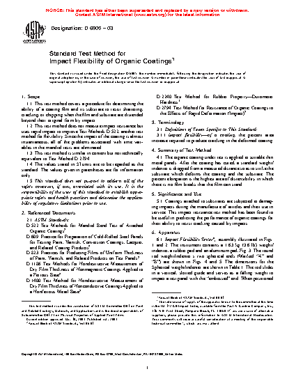 1.2 This practice does not measure impact resistance but uses rapid impact to improve Test Methods D522, a test method for flexibility. Since the impact of the coating is almost instantaneous, all of the problems associated with time variables in the mandrel tests are eliminated.