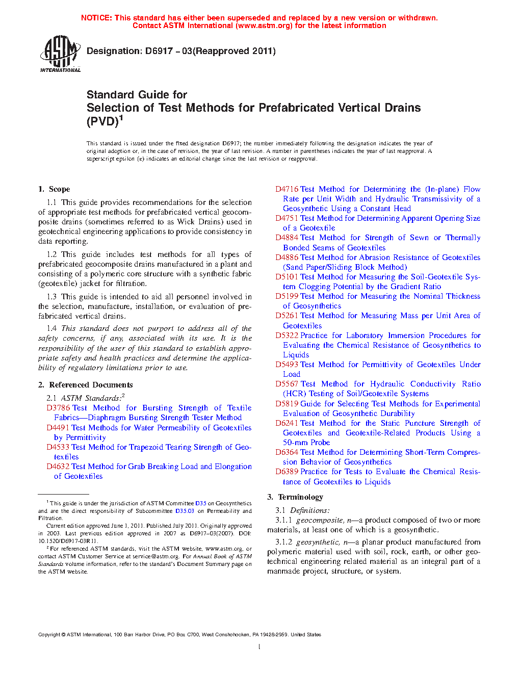 1.3 This guide is intended to aid all personnel involved in the selection, manufacture, installation, or evaluation of prefabricated vertical drains.