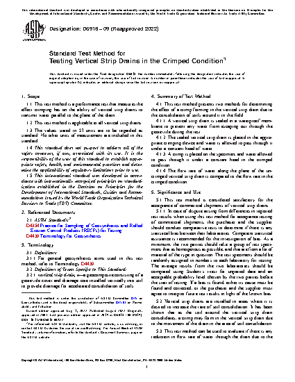 5.3 This test method can be used to evaluate if there is any reduction in flow rate of water through the drain due to the crimping, and what effect, if any, this crimping may have on the rate of consolidation of the soil.
