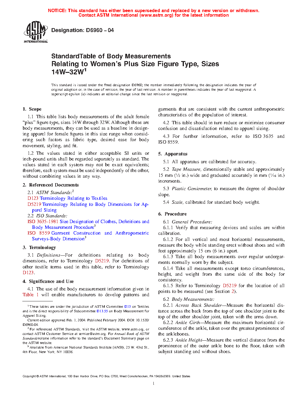 1.2 These tables list body measurements for the complete range of plus women sizing.
