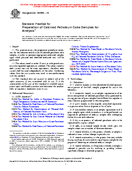 1.1 This practice covers the preparation procedures necessary for the reduction and division of calcined petroleum coke samples in order to generate appropriate analytical samples upon which physical and chemical analytical tests will be performed.