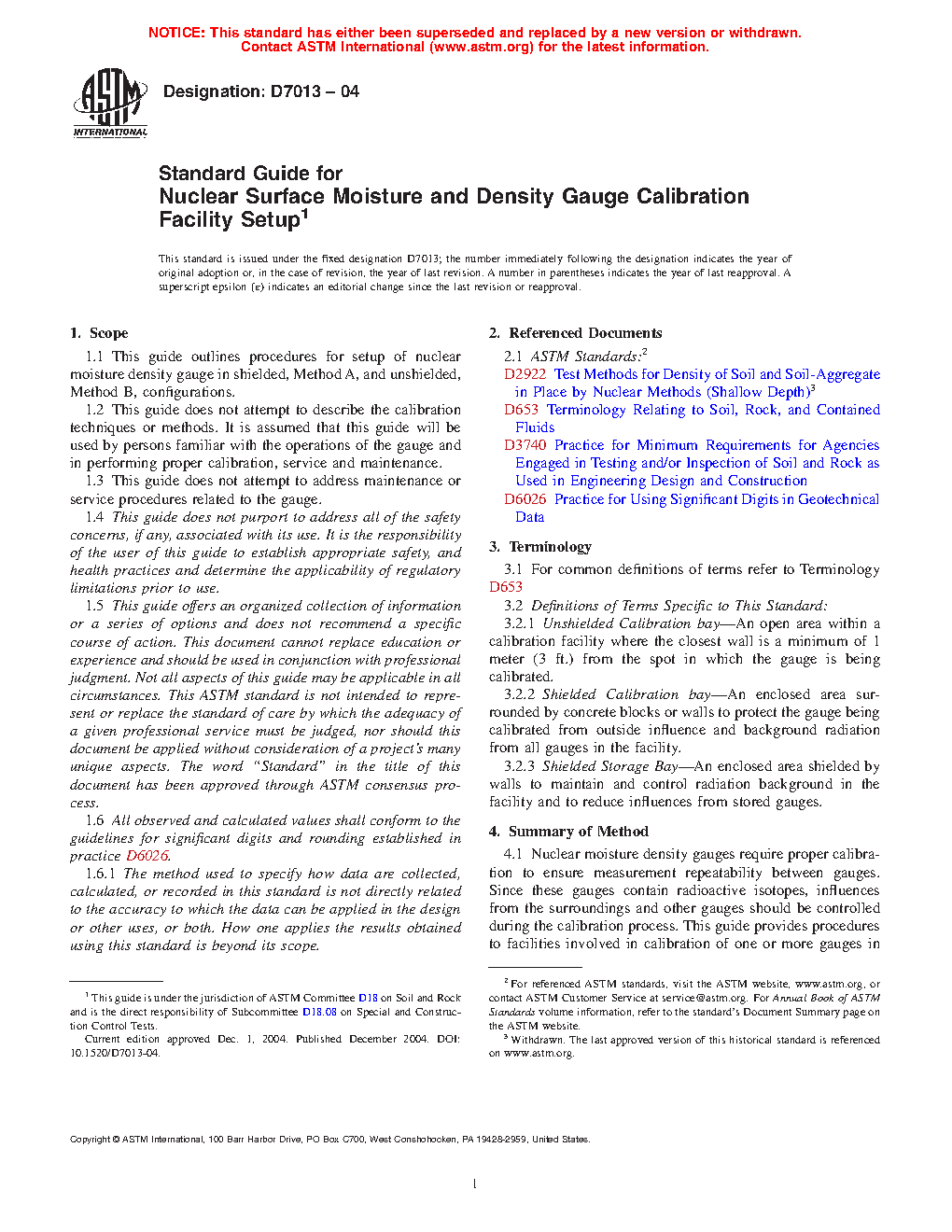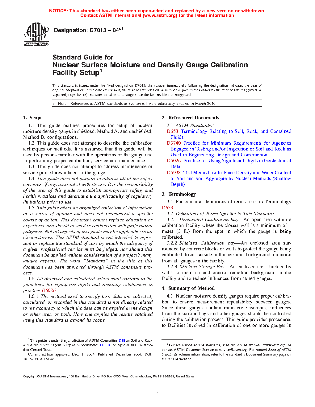 1.1 This guide outlines procedures for setup of nuclear moisture density gauge in shielded, Method A, and unshielded, Method B, configurations.