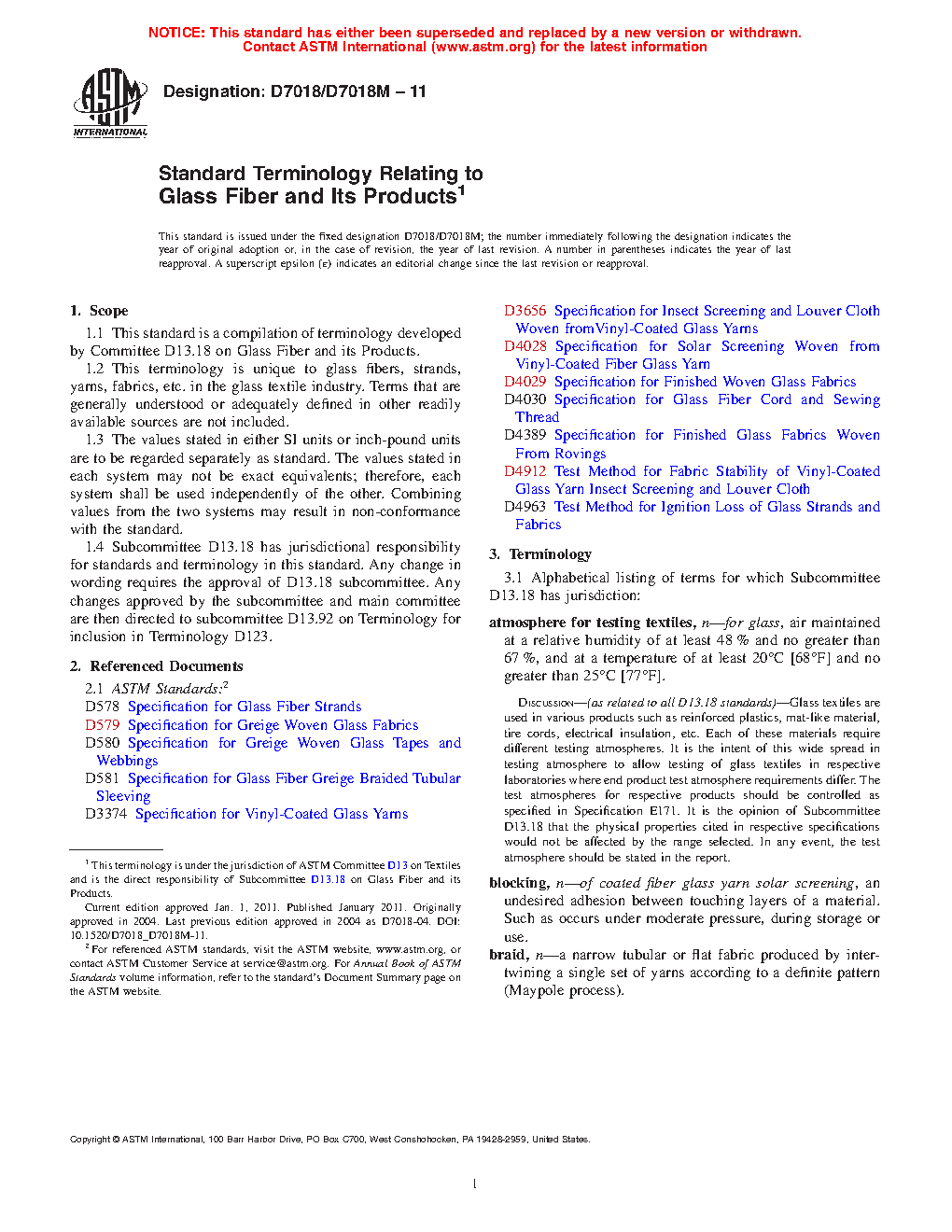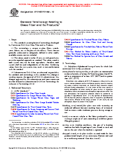 1.2 This terminology is unique to glass fibers, strands, yarns, fabrics, etc. in the glass textile industry. Terms that are generally understood or adequately defined in other readily available sources are not included.