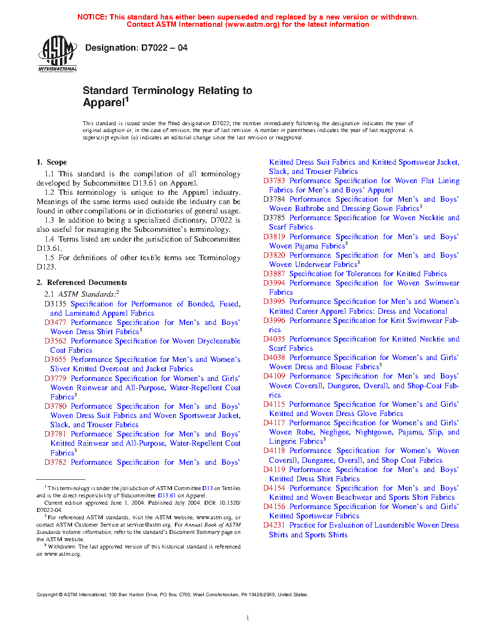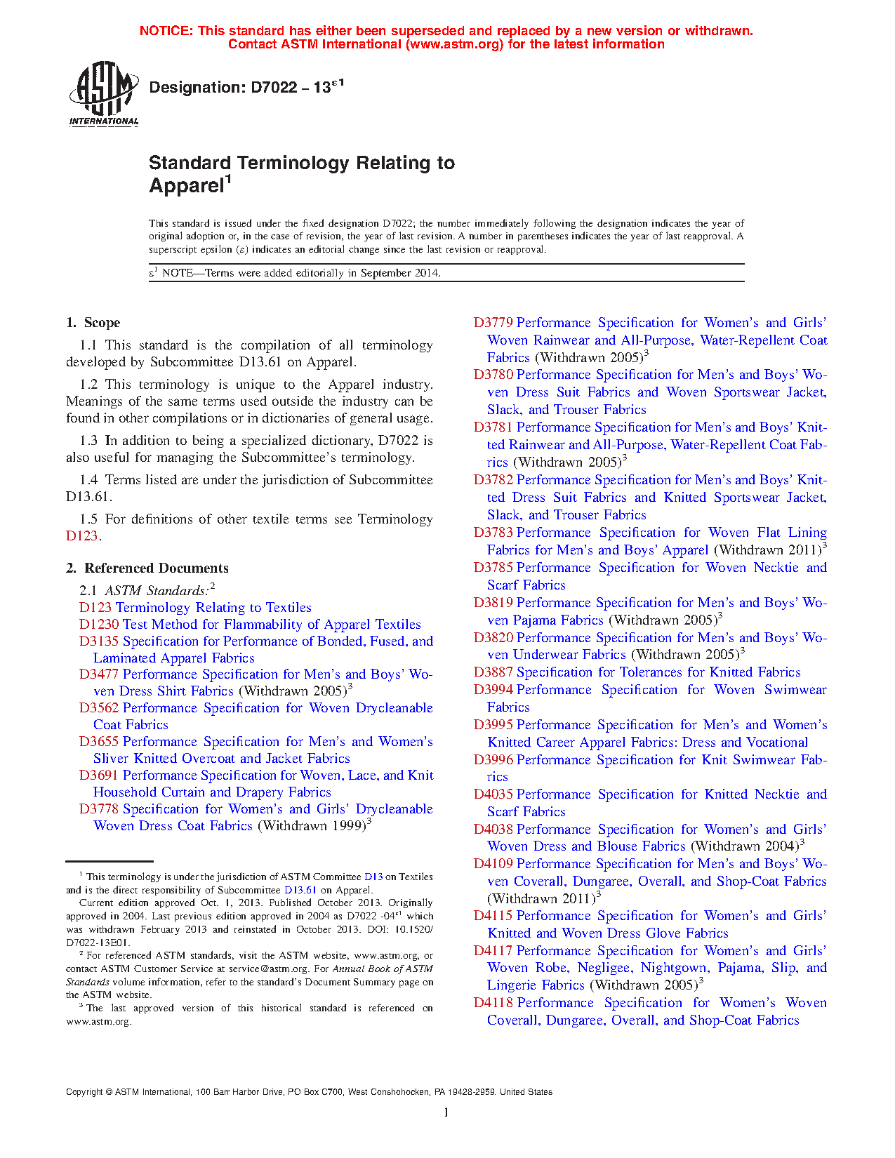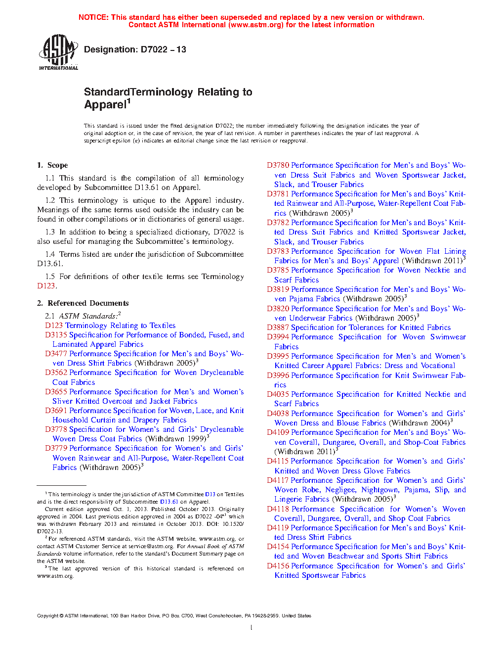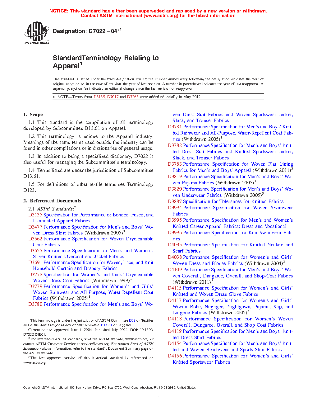 Standard Terminology Relating to Apparel (Withdrawn 2013)