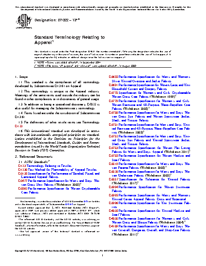 1.1 This standard is the compilation of all terminology developed by Subcommittee D13.61 on Apparel.