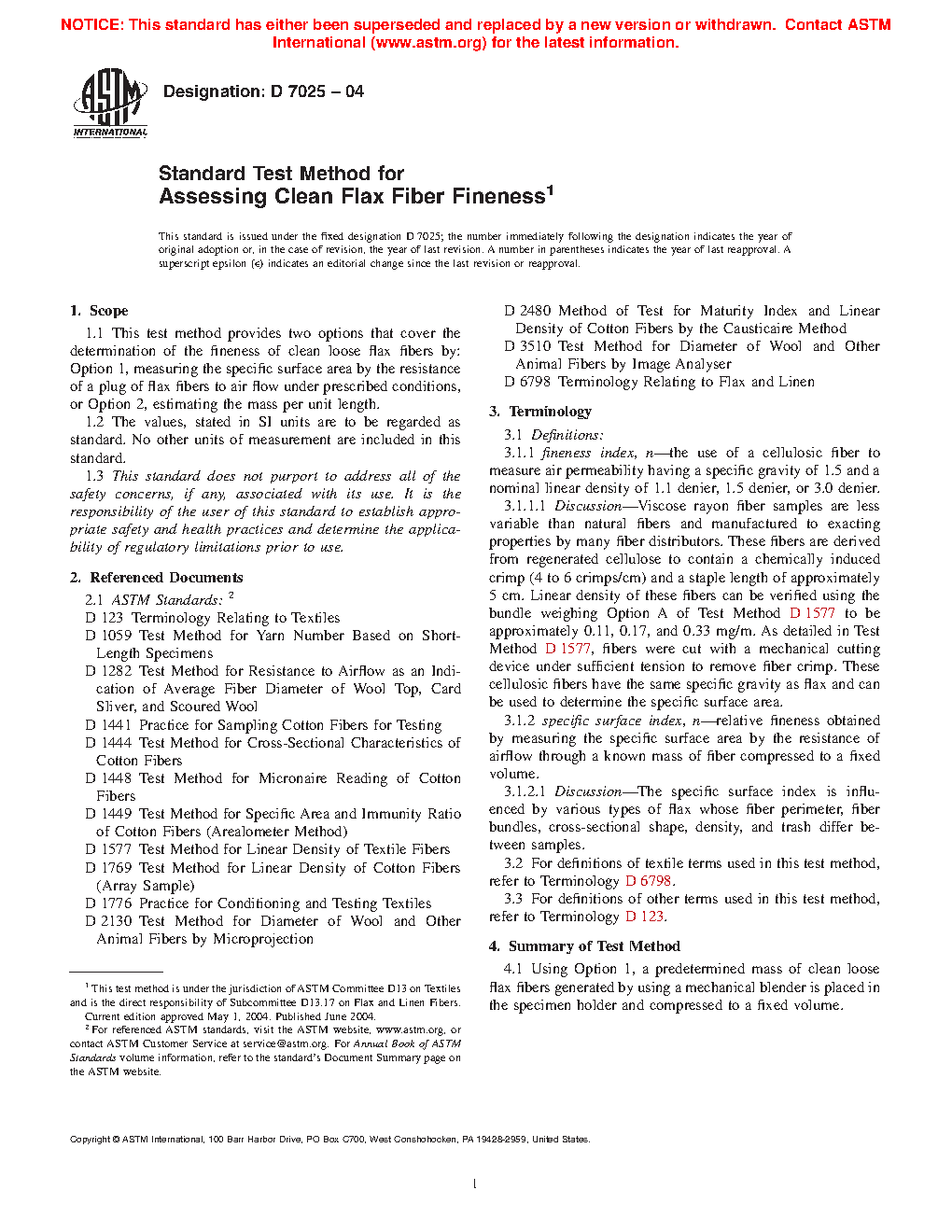 Note 3: A modification of this test method can be used in commercial trading to select bales that will conform to contract guarantees for specified specific surface index. For this purpose, the usual practice to test only one specimen per sample.