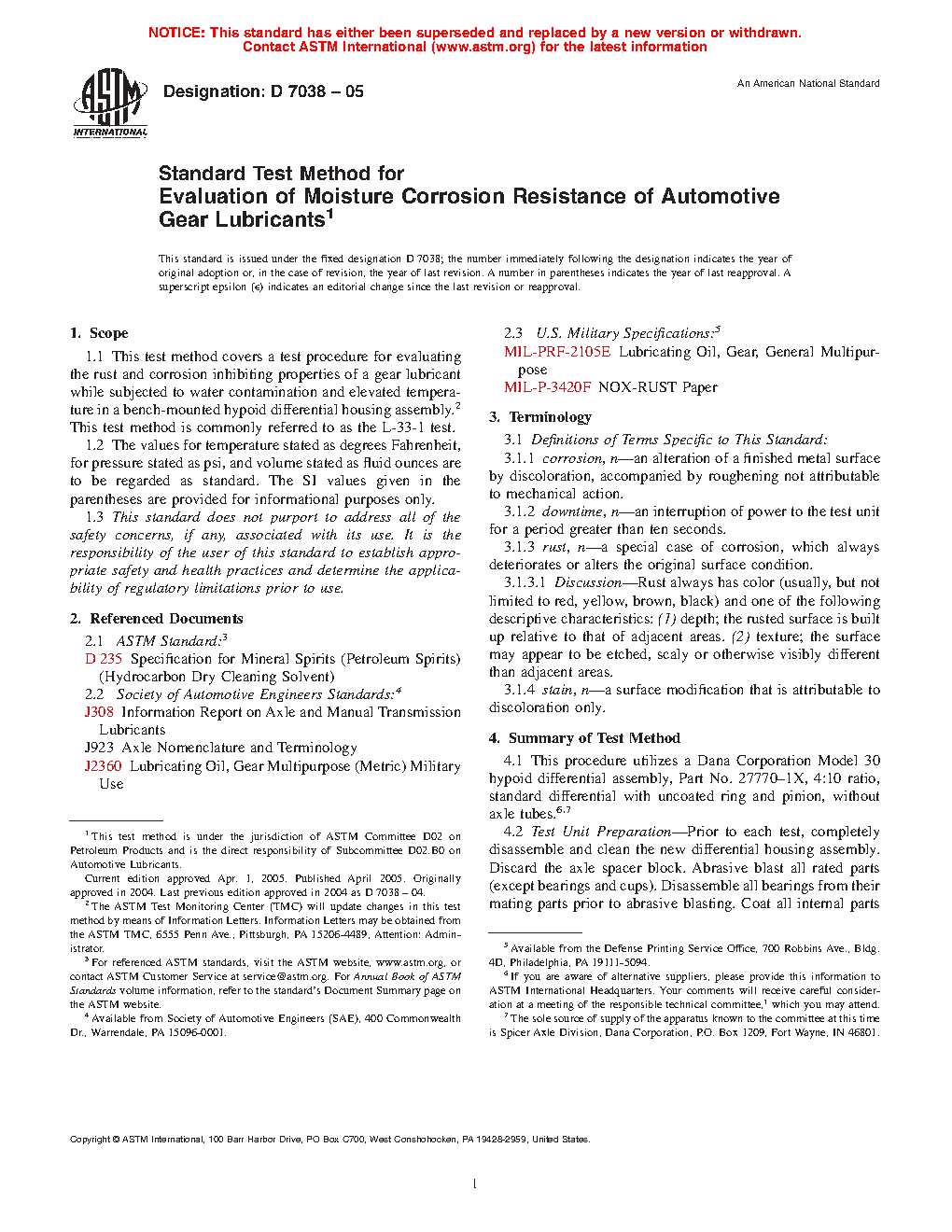 5.2 The L-33-1 test procedure is used or referred to in the following documents: ASTM Publication STP-512A,6 SAE J308, SAE J2360, and U.S. Military Specification MIL-PRF-2105E.