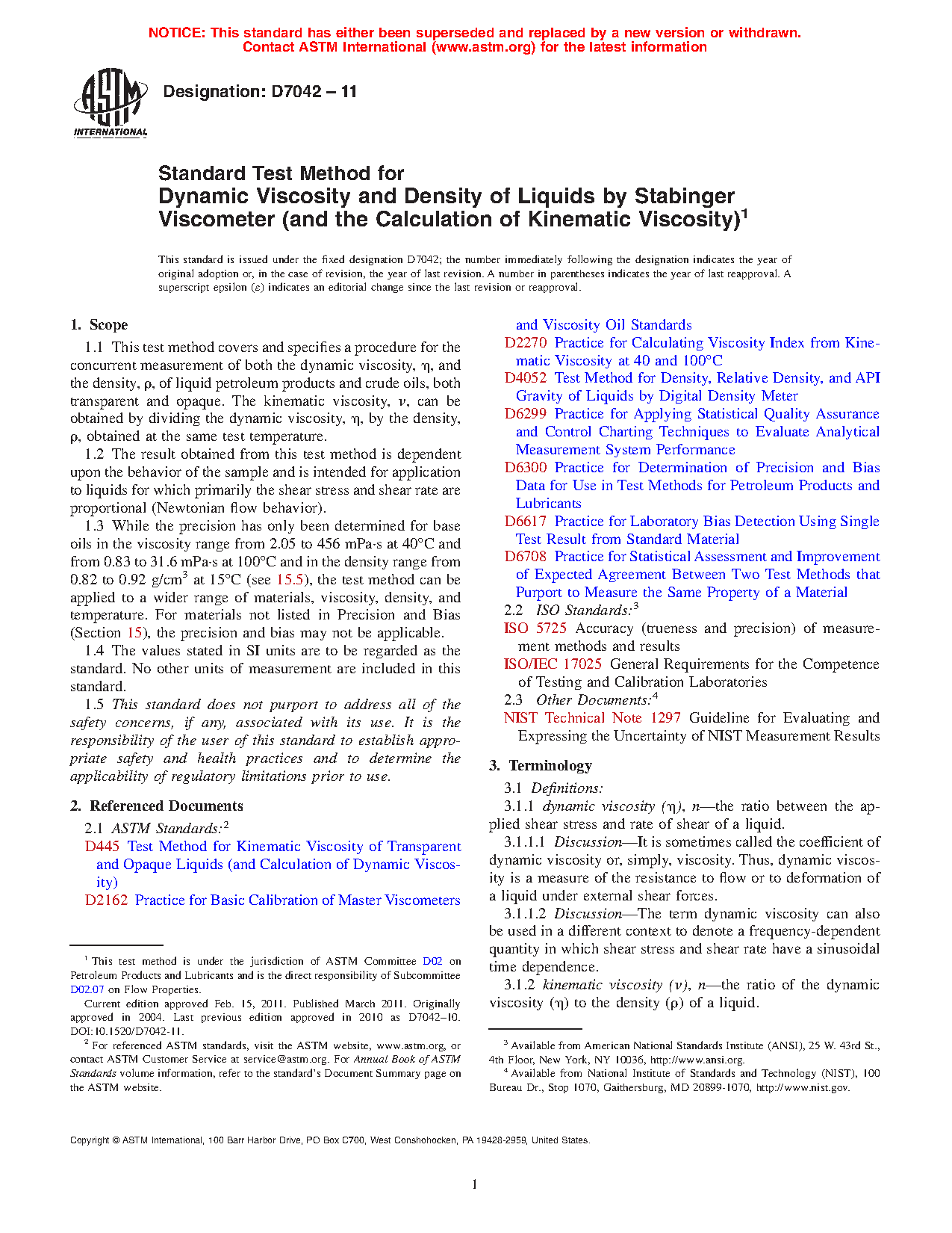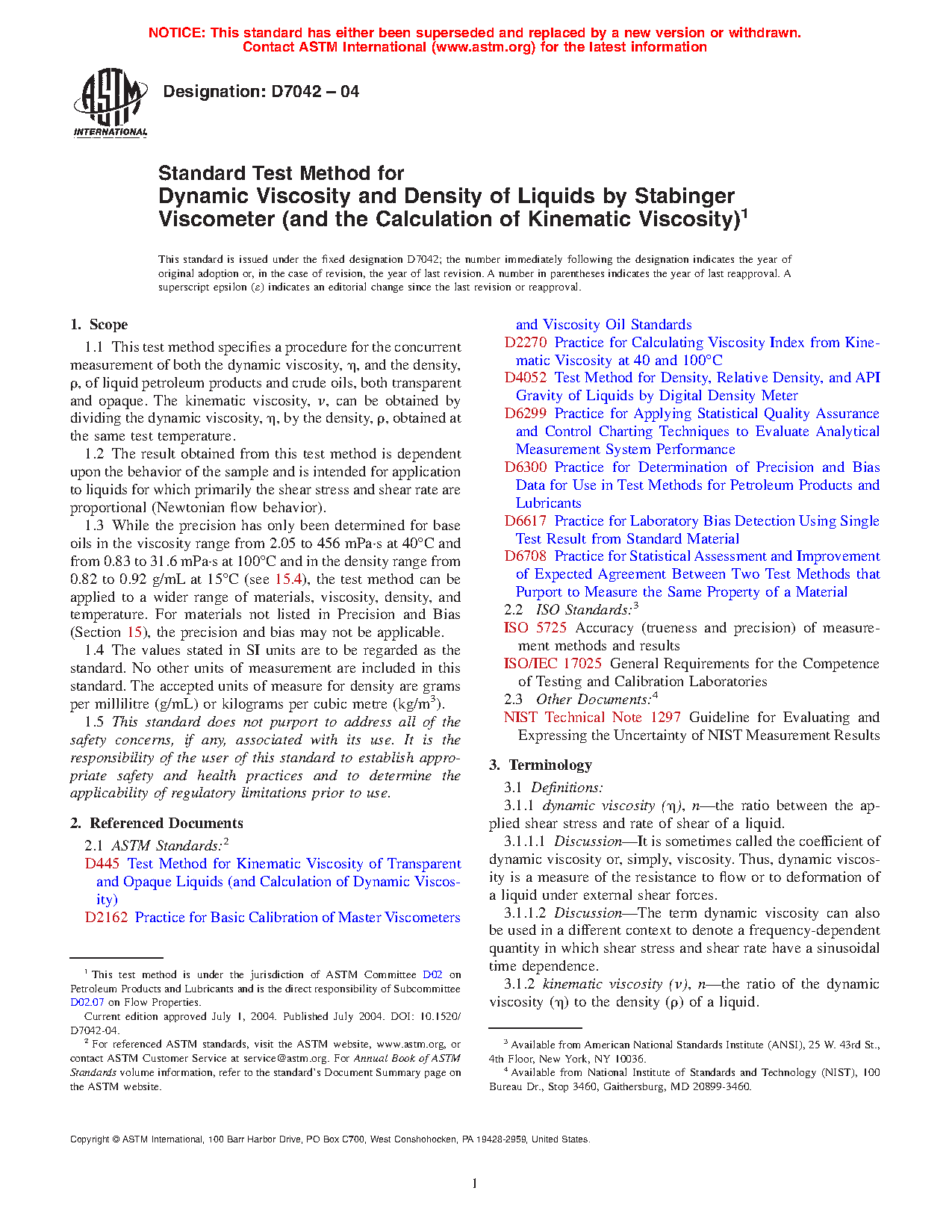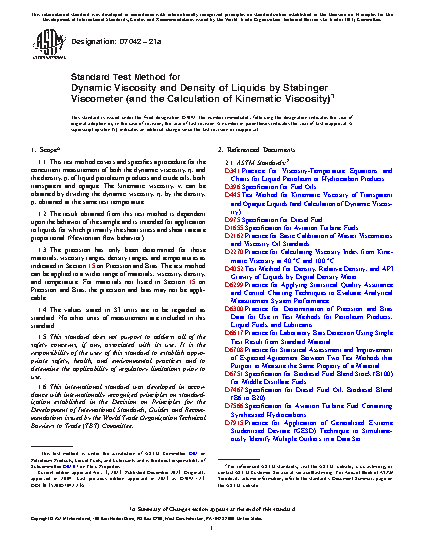 1.1 This test method covers and specifies a procedure for the concurrent measurement of both the dynamic viscosity, η, and the density, ρ, of liquid petroleum products and crude oils, both transparent and opaque. The kinematic viscosity, ν, can be obtained by dividing the dynamic viscosity, η, by the density, ρ, obtained at the same test temperature.
