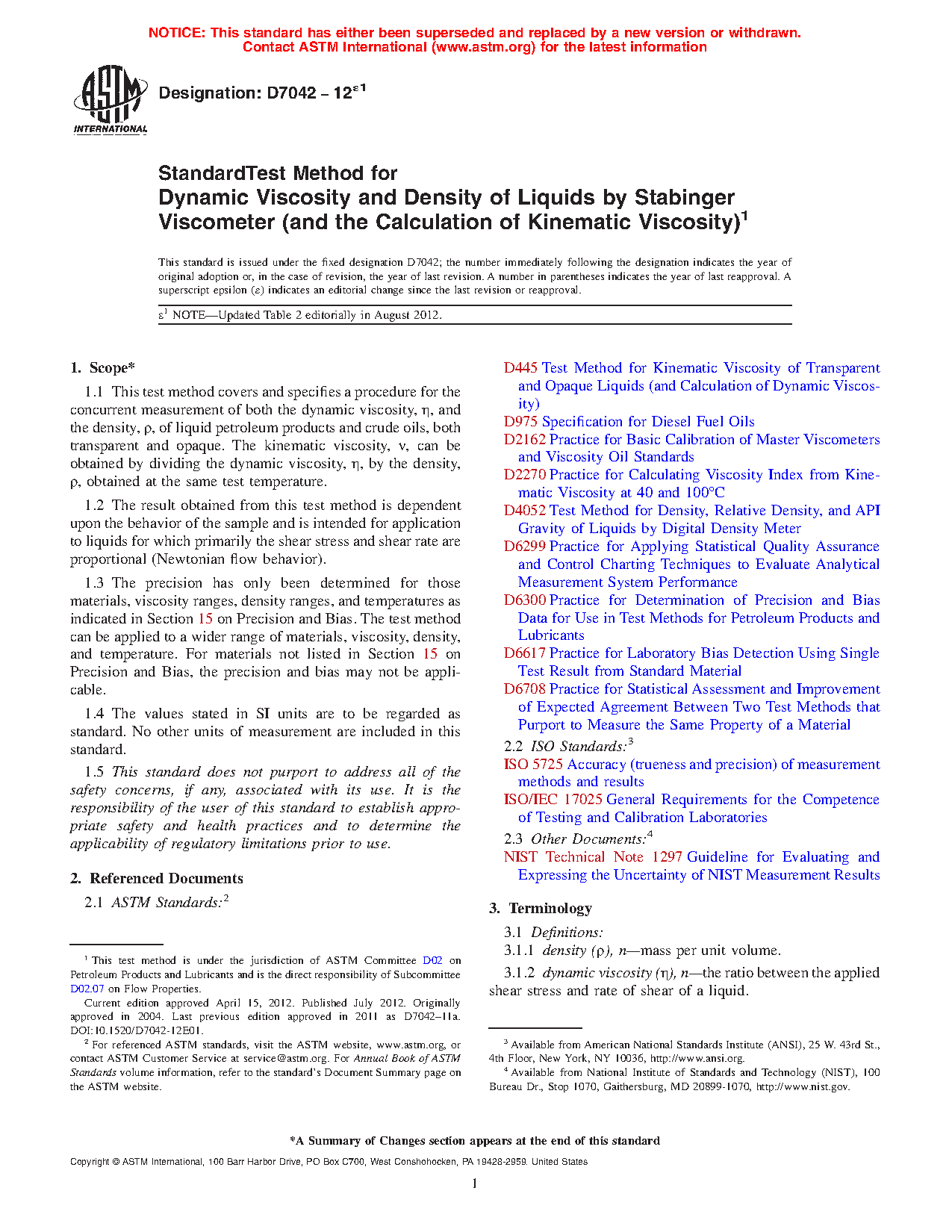 Determination of the density or relative density of petroleum and its products is necessary for the conversion of measured volumes to volumes at the standard temperature of 15°C.