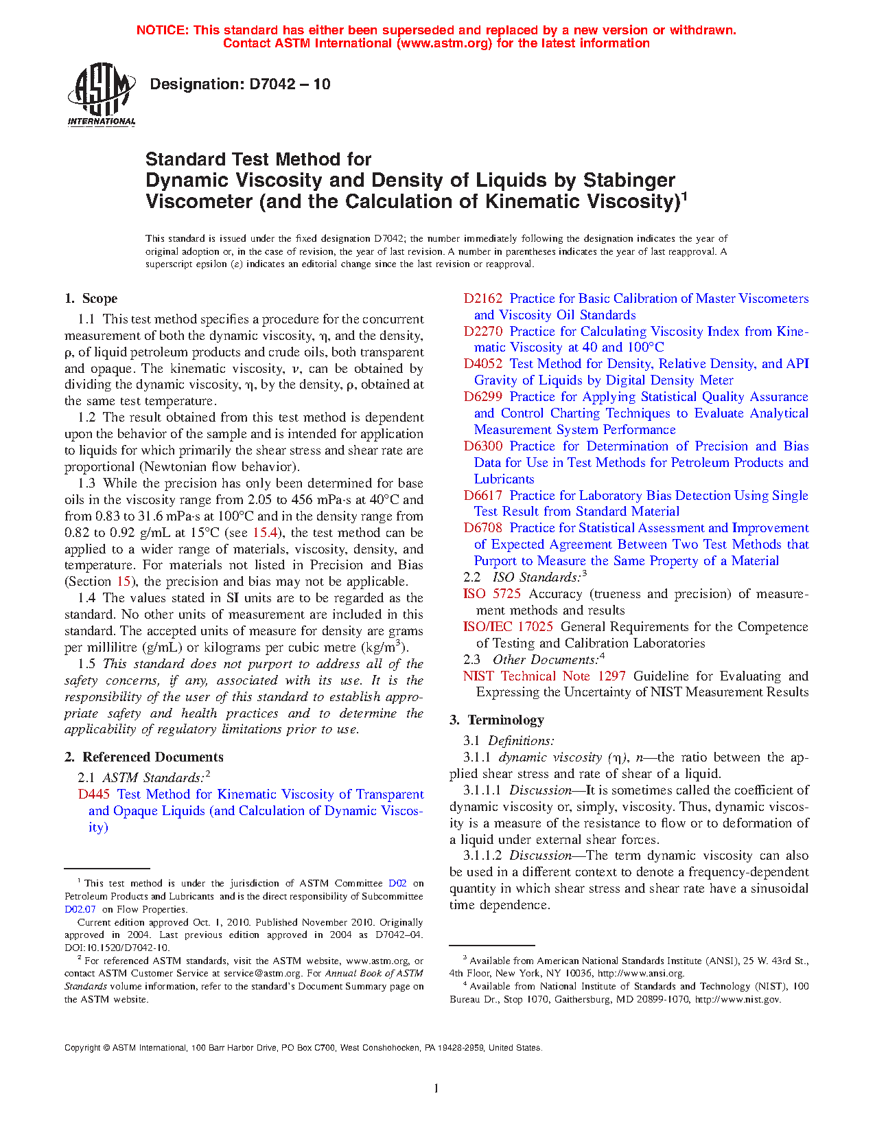 Standard Test Method for Dynamic Viscosity and Density of Liquids by Stabinger Viscometer (and the Calculation of Kinematic Viscosity)