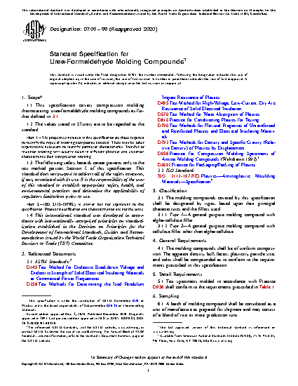 1.1 This specification covers compression molding thermosetting, urea-formaldehyde molding compounds as further defined in 3.1.