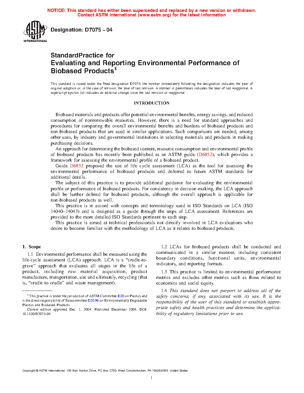 1.2 LCAs for biobased products shall be conducted and communicated in a similar manner, including consistent boundary conditions, functional units, environmental indicators, and reporting formats.