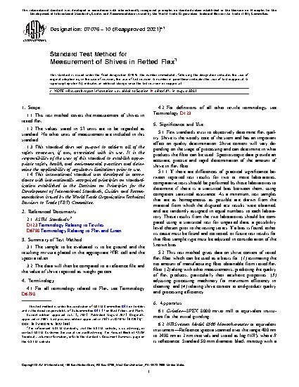 1.1 This test method covers the measurement of shives in retted flax.