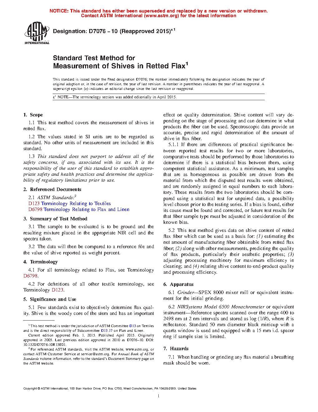 ASTM D7076-10(2015)e1