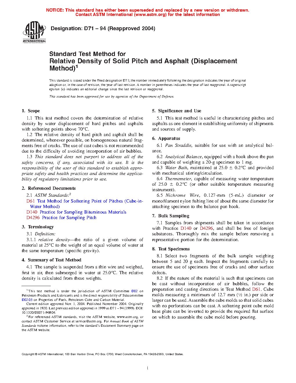 ASTM D71-94(2015)e1
