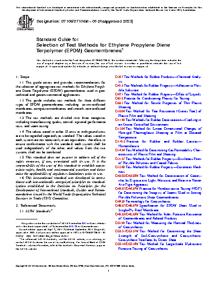 1.2 This guide includes test methods for three different types of EPDM geomembranes including: scrim-reinforced membranes, composite membranes, and smooth, nonreinforced membranes.