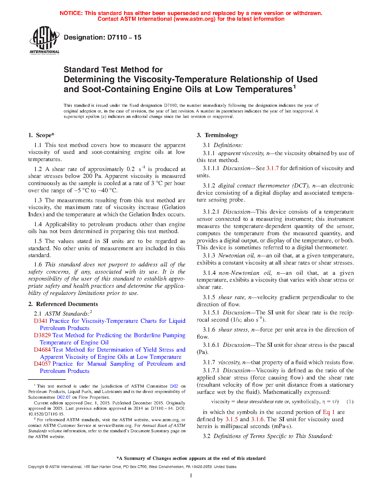 5.2 Significance of the Test Method—The temperature-scanning technique employed by this test method was designed to determine the susceptibility of the engine oil to flow-limited and air-binding response to slow cooling conditions by providing continuous information on the rheological condition of the oil over the temperature range of use.3,4,5 In this way, both viscometric and gelation response are obtained in one test.