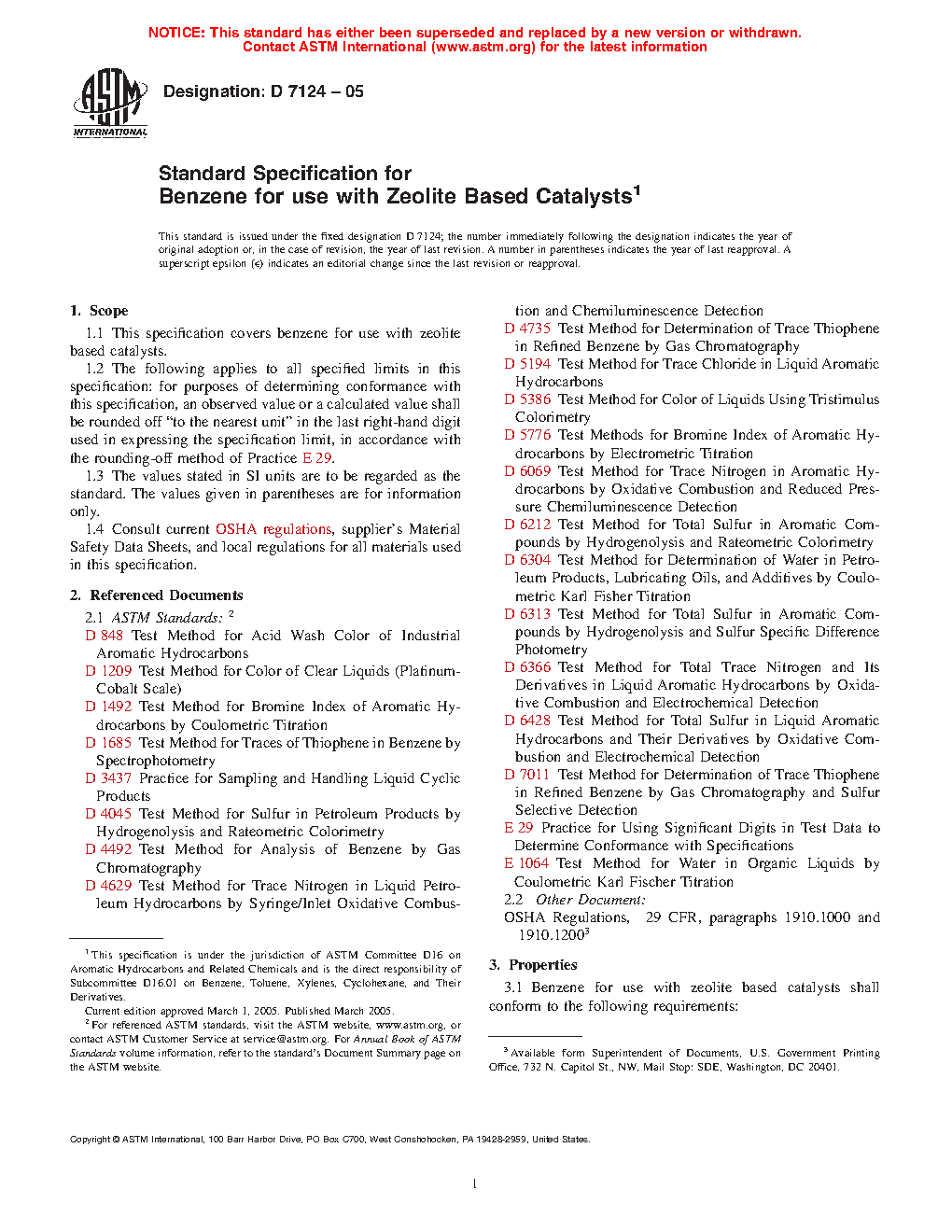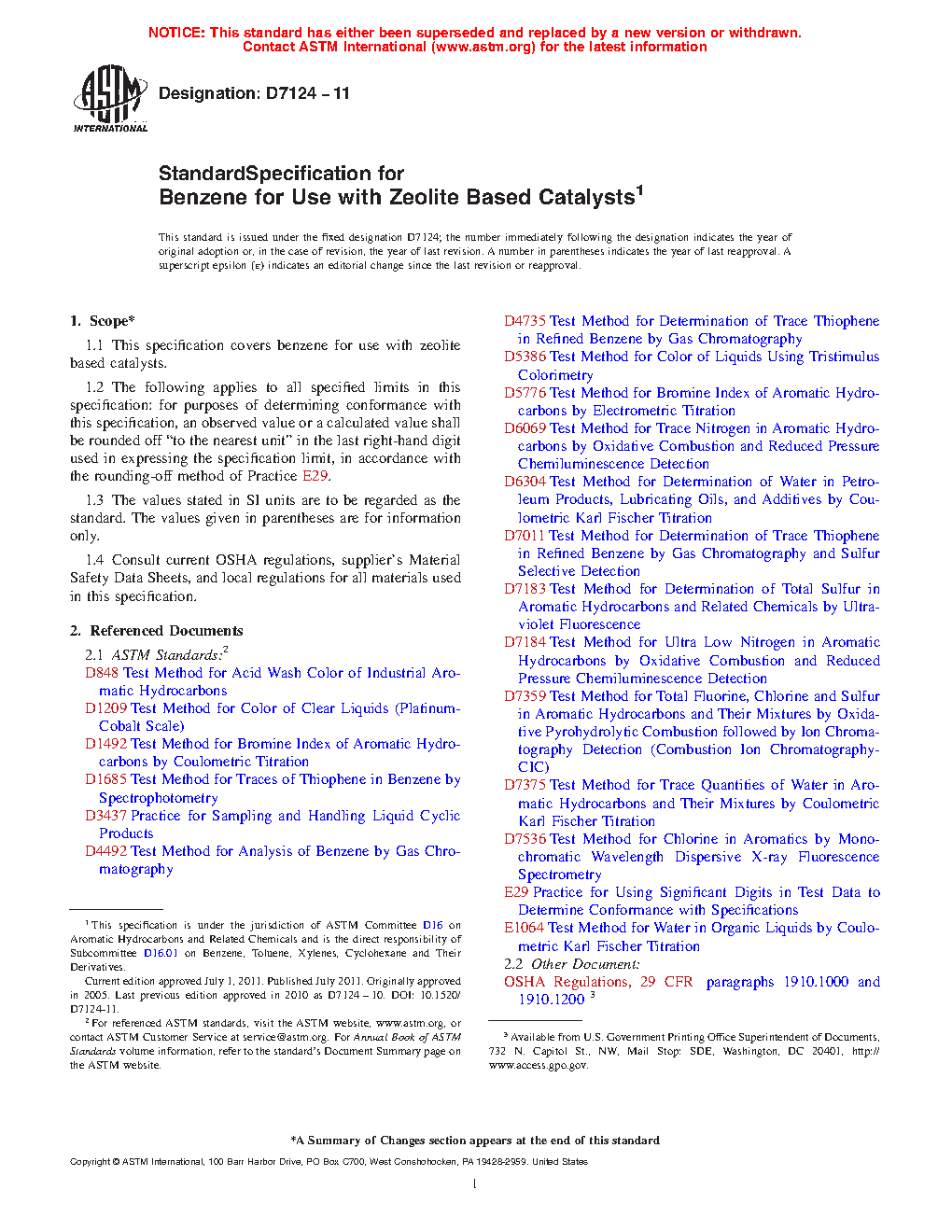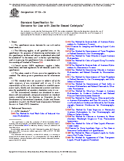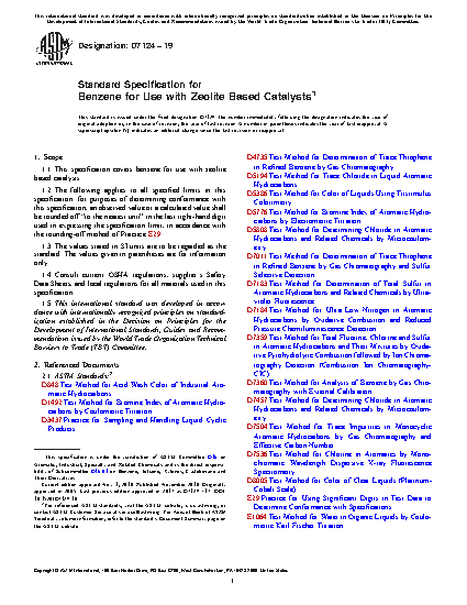1.1 This specification covers benzene for use with zeolite based catalysts.