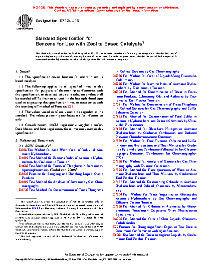 1.1 This specification covers benzene for use with zeolite based catalysts.
