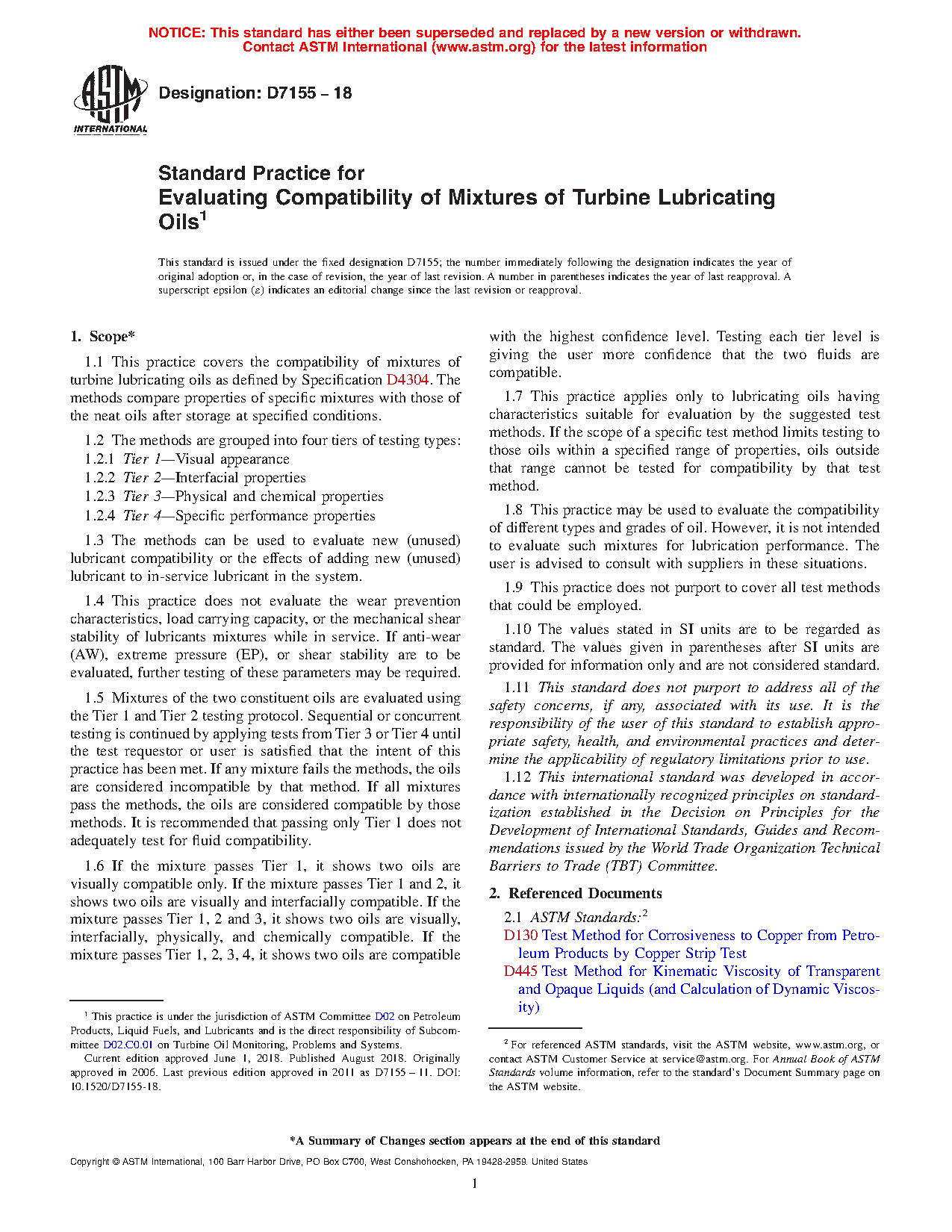 1.6 If the mixture passes Tier 1, it shows two oils are visually compatible only. If the mixture passes Tier 1 and 2, it shows two oils are visually and interfacially compatible. If the mixture passes Tier 1, 2 and 3, it shows two oils are visually, interfacially, physically, and chemically compatible. If the mixture passes Tier 1, 2, 3, 4, it shows two oils are compatible with the highest confidence level. Testing each tier level is giving the user more confidence that the two fluids are compatible.