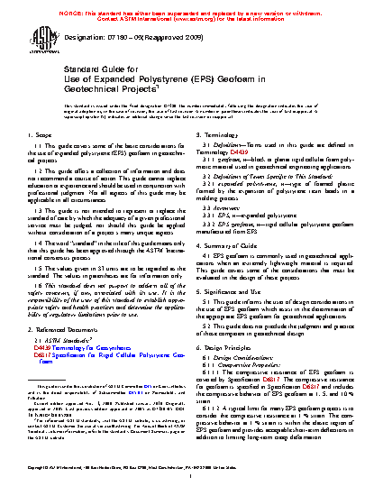 1.1 This guide covers some of the basic considerations for the use of expanded polystyrene (EPS) geofoam in geotechnical projects.