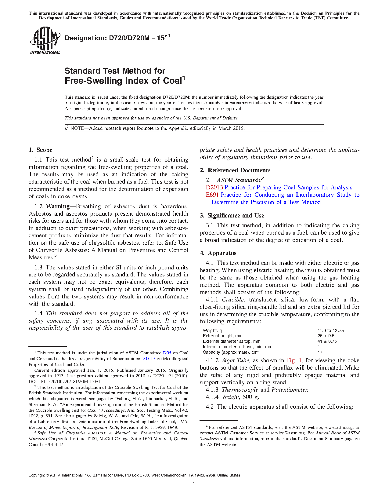 1.4 This international standard was developed in accordance with internationally recognized principles on standardization established in the Decision on Principles for the Development of International Standards, Guides and Recommendations issued by the World Trade Organization Technical Barriers to Trade (TBT) Committee.