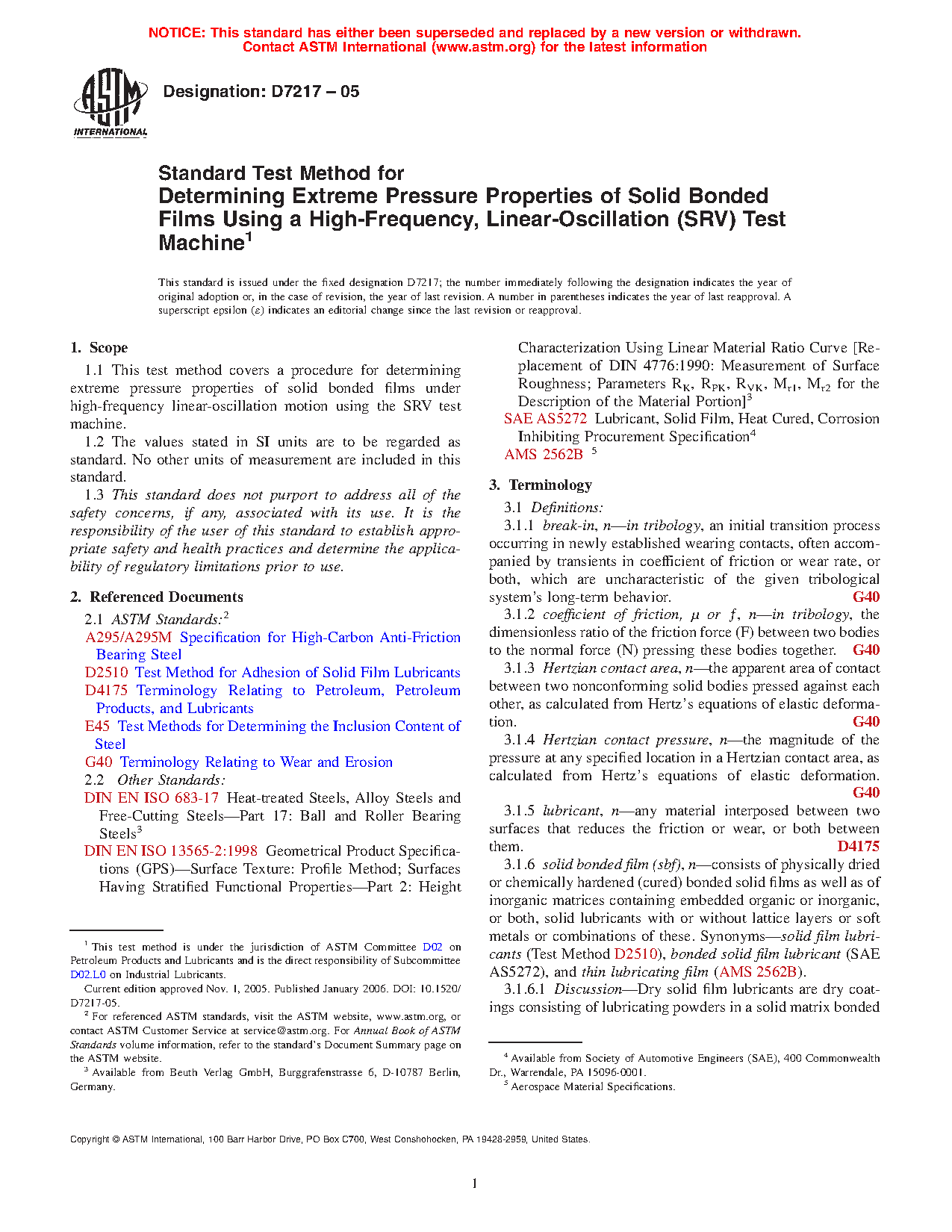 1.1 This test method covers a procedure for determining extreme pressure properties of solid bonded films under high-frequency linear-oscillation motion using the SRV test machine.