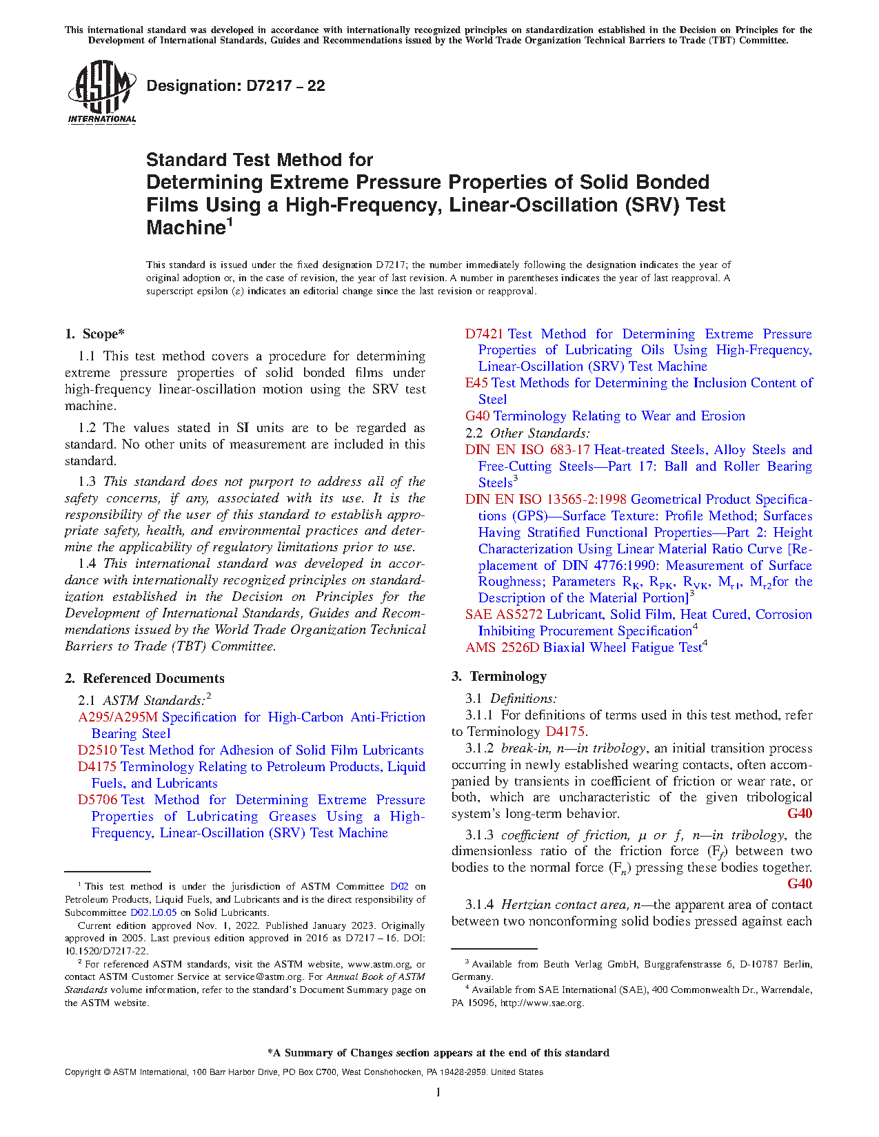1.1 This test method covers a procedure for determining extreme pressure properties of solid bonded films under high-frequency linear-oscillation motion using the SRV test machine.