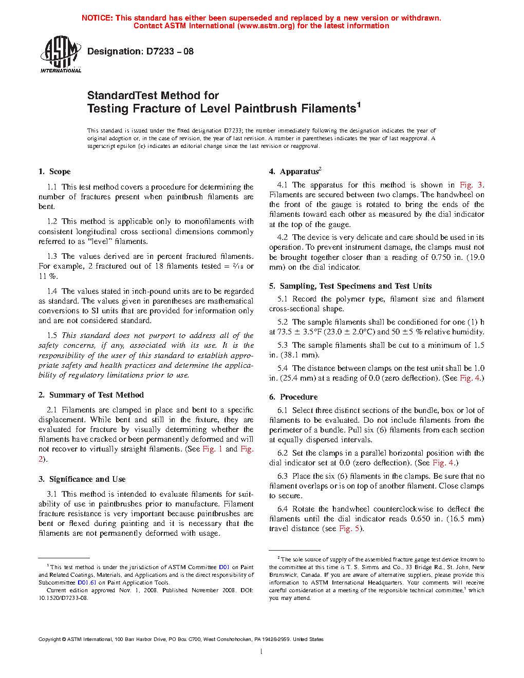 3.1 This test method is intended to evaluate filaments for suitability of use in paintbrushes prior to manufacture. Filament fracture resistance is very important because paintbrushes are bent or flexed during painting and it is necessary that the filaments are not permanently deformed with usage.