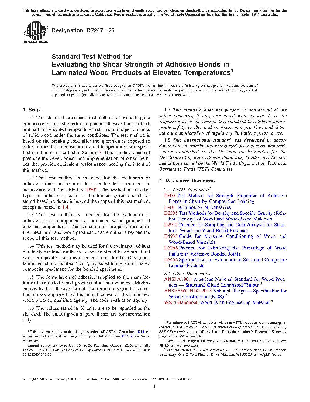 1.3 This test method is intended for the evaluation of adhesives as a component of laminated wood products at elevated temperatures. The evaluation of fire performance on fire-rated laminated wood products or assemblies is beyond the scope of this test method.
