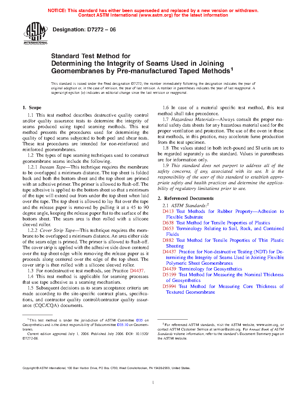 1.5 Subsequent decisions as to seam acceptance criteria are made according to the site-specific contract plans, specifications, and contractor quality control/contractor quality assurance (CQC/CQA) documents.