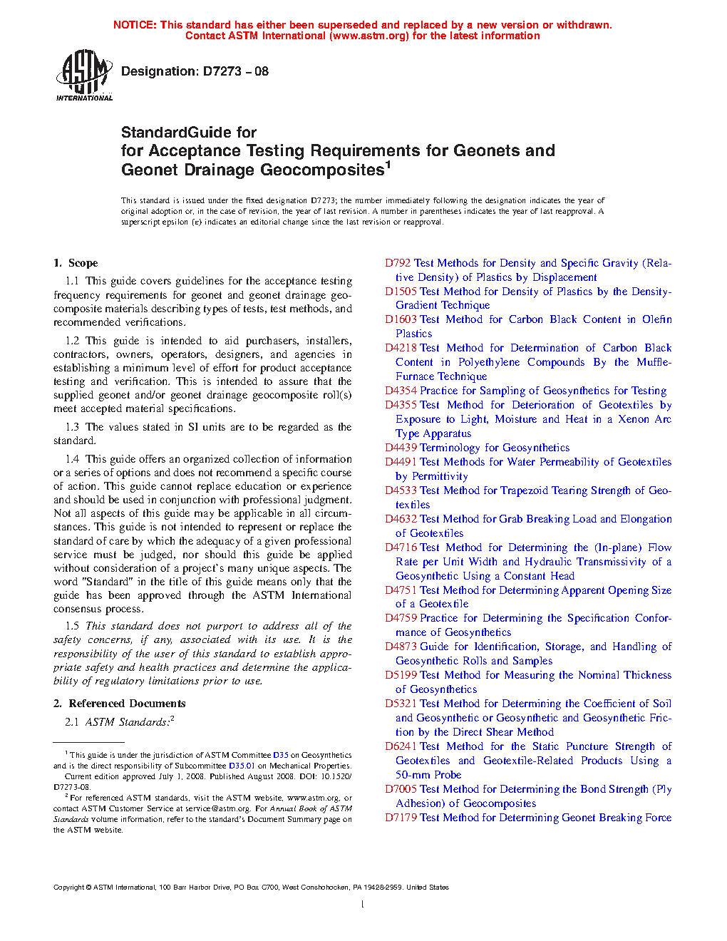 1.2 This guide is intended to aid purchasers, installers, contractors, owners, operators, designers, and agencies in establishing a minimum level of effort for product acceptance testing and verification. This is intended to assure that the supplied geonet and/or geonet drainage geocomposite roll(s) meet accepted material specifications.