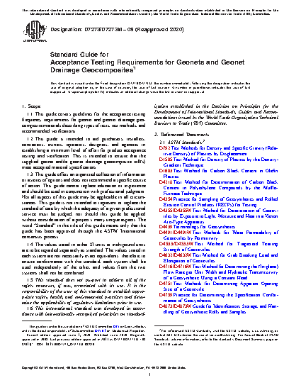 1.2 This guide is intended to aid purchasers, installers, contractors, owners, operators, designers, and agencies in establishing a minimum level of effort for product acceptance testing and verification. This is intended to ensure that the supplied geonet and/or geonet drainage geocomposite roll(s) meet accepted material specifications.