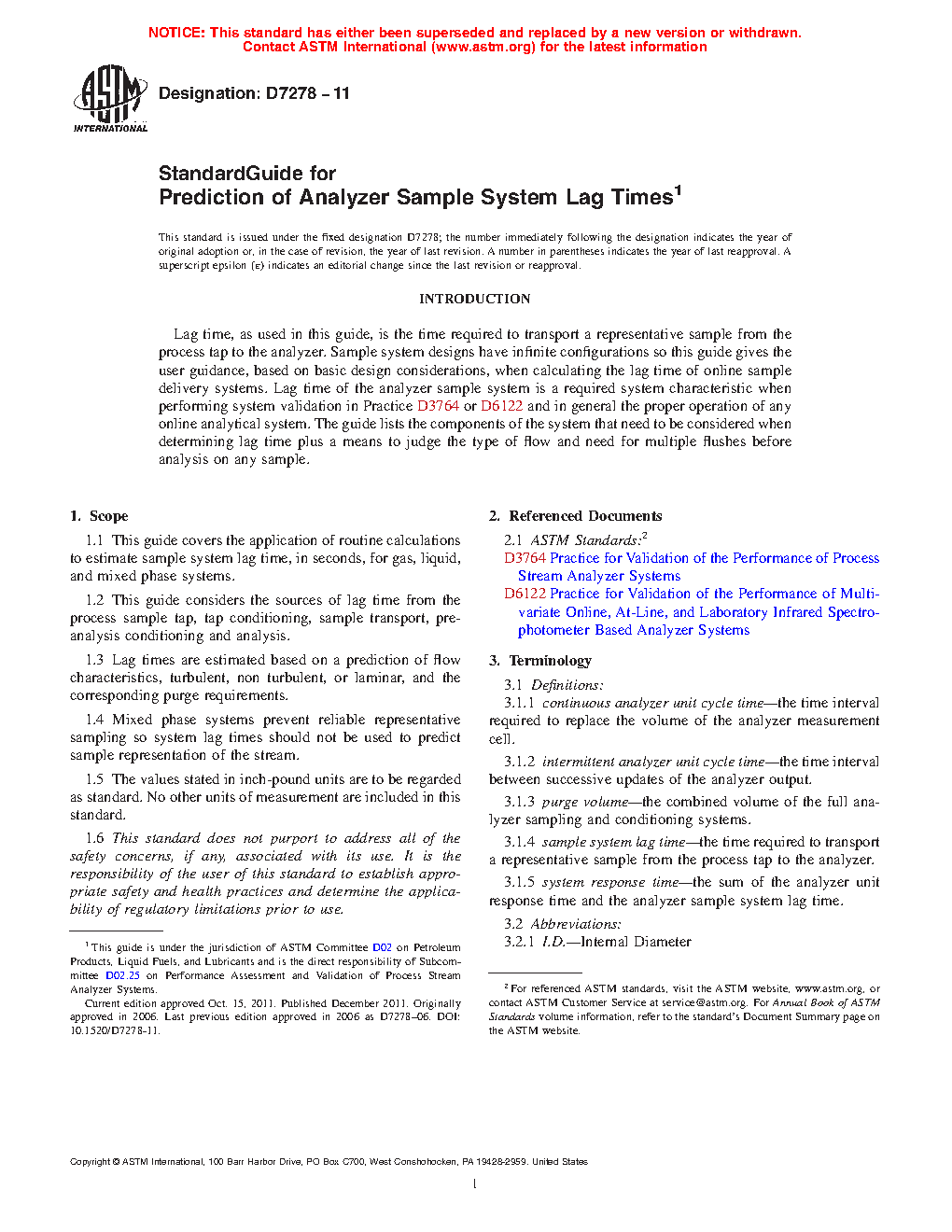 1.1 This guide covers the application of routine calculations to estimate sample system lag time, in seconds, for gas, liquid, and mixed phase systems.