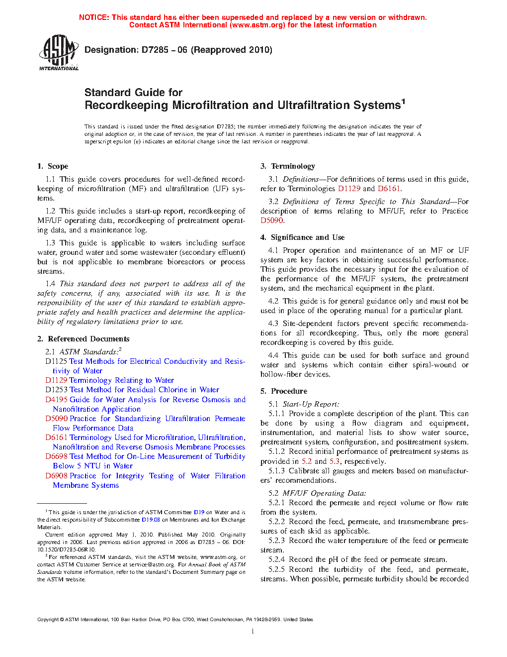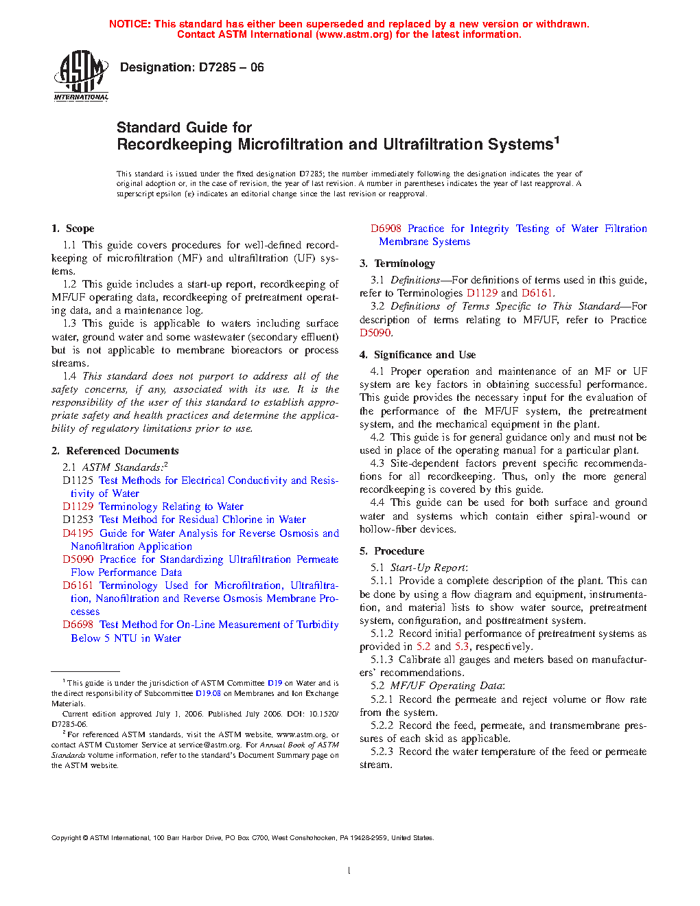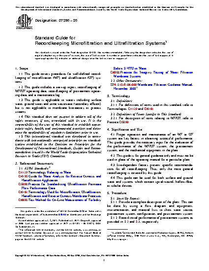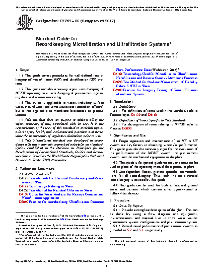 1.1 This guide covers procedures for well-defined recordkeeping of microfiltration (MF) and ultrafiltration (UF) systems.