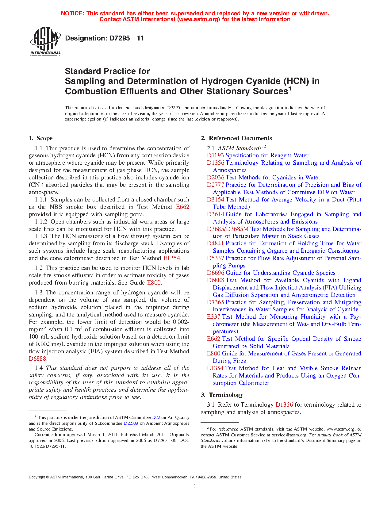 1.2 This practice can be used to monitor HCN levels in lab scale fire smoke effluents in order to estimate toxicity of gases produced from burning materials. See Guide E800.