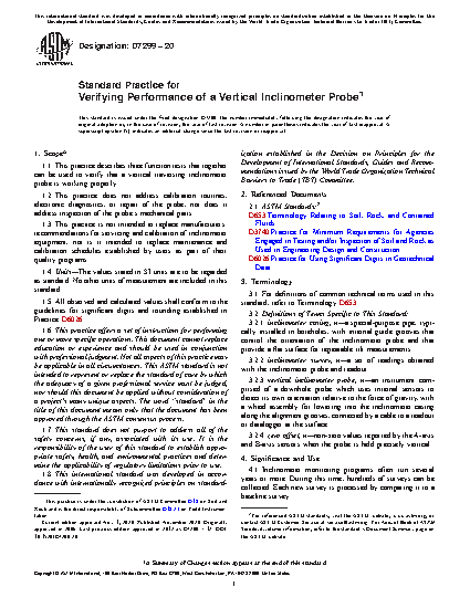 1.1 This practice describes three function tests that together can be used to verify that a vertical traversing inclinometer probe is working properly.