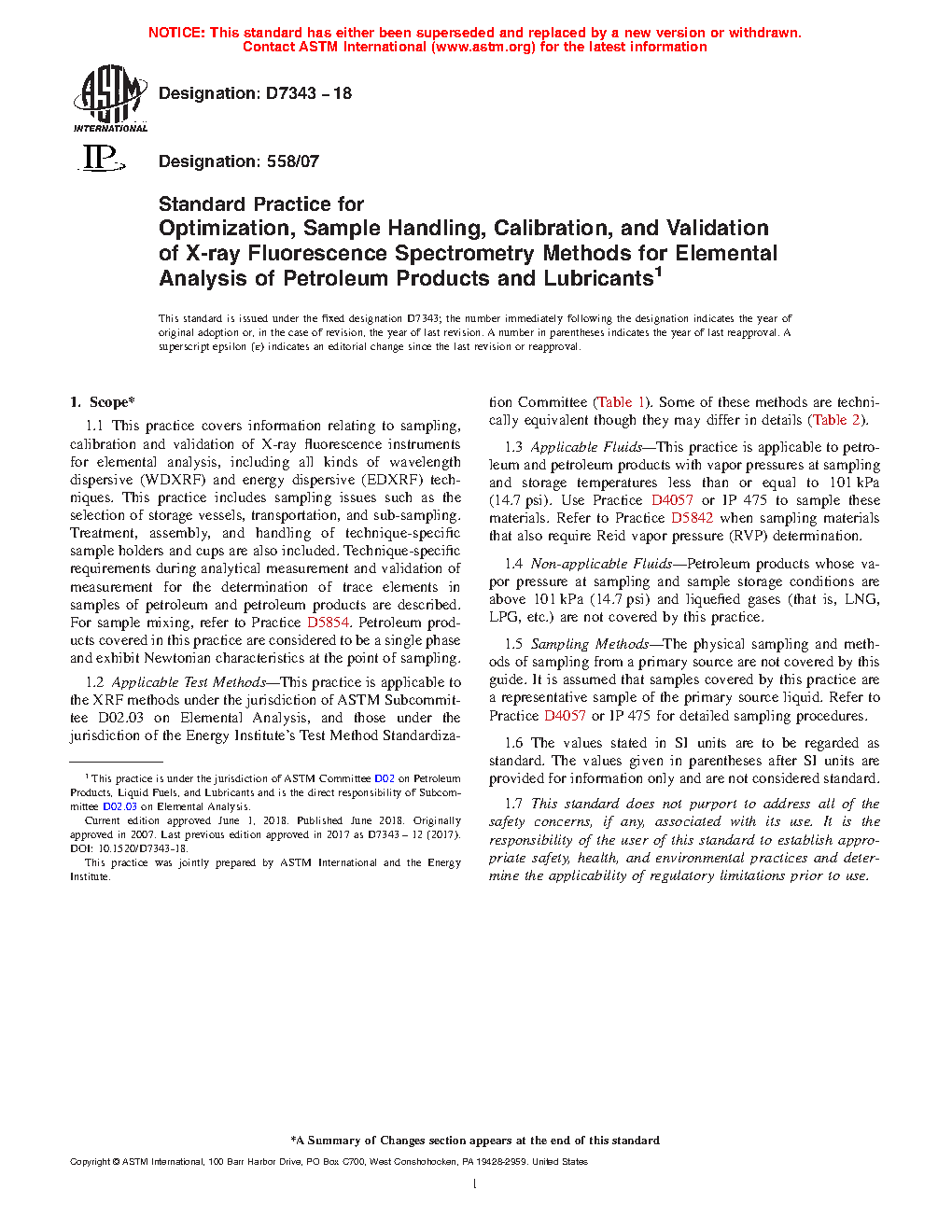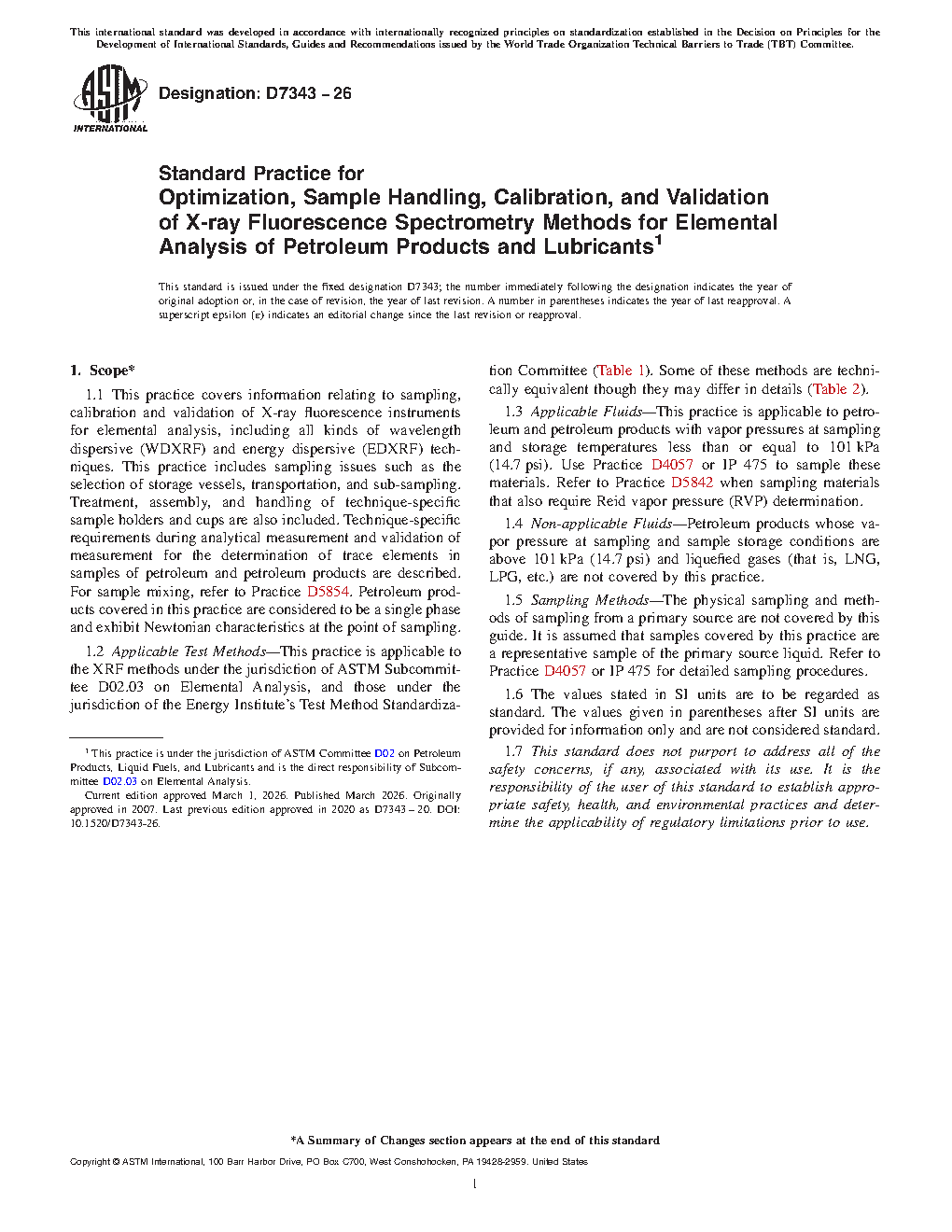 1.2 Applicable Test Methods—This practice is applicable to the XRF methods under the jurisdiction of ASTM Subcommittee D02.03 on Elemental Analysis, and those under the jurisdiction of the Energy Institute’s Test Method Standardization Committee (Table 1). Some of these methods are technically equivalent though they may differ in details (Table 2).