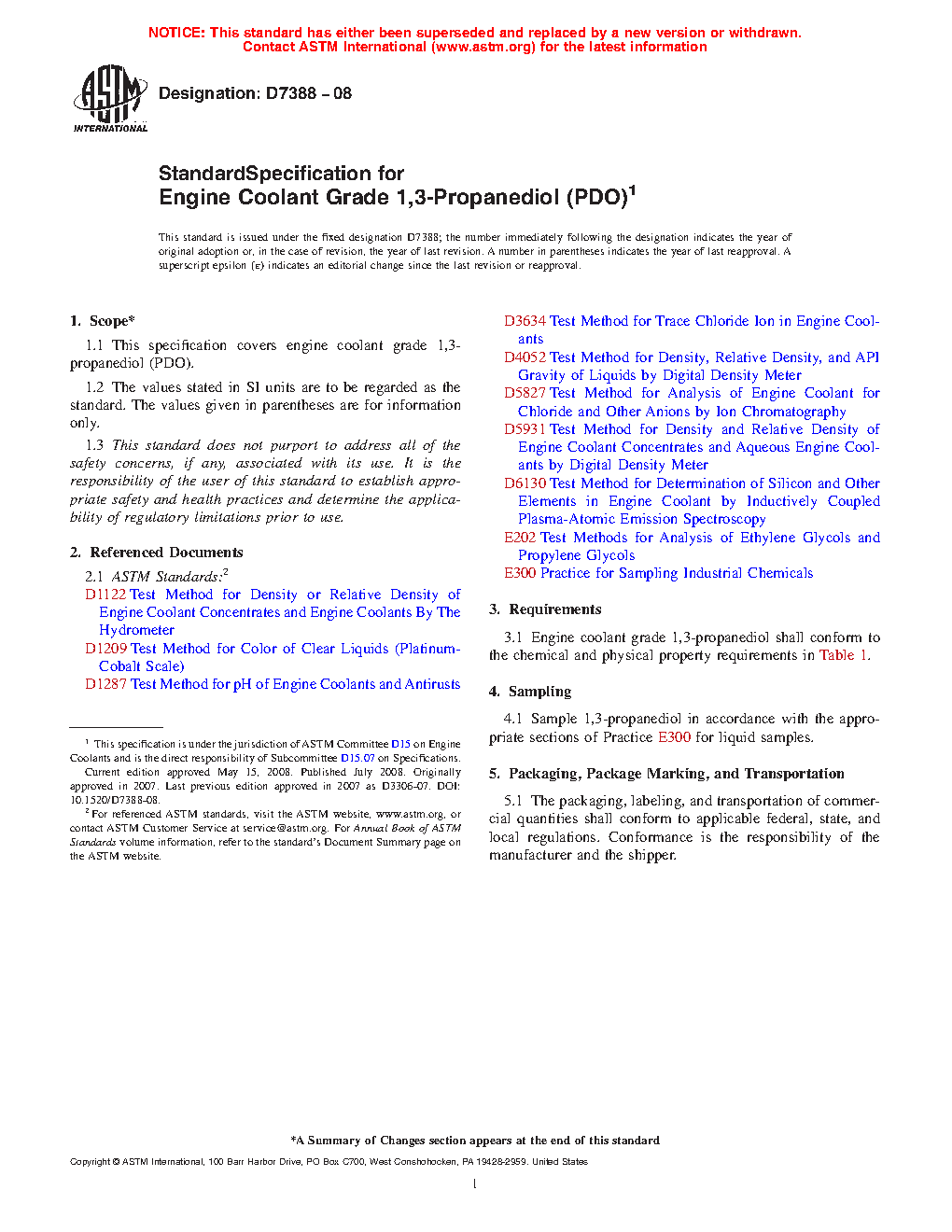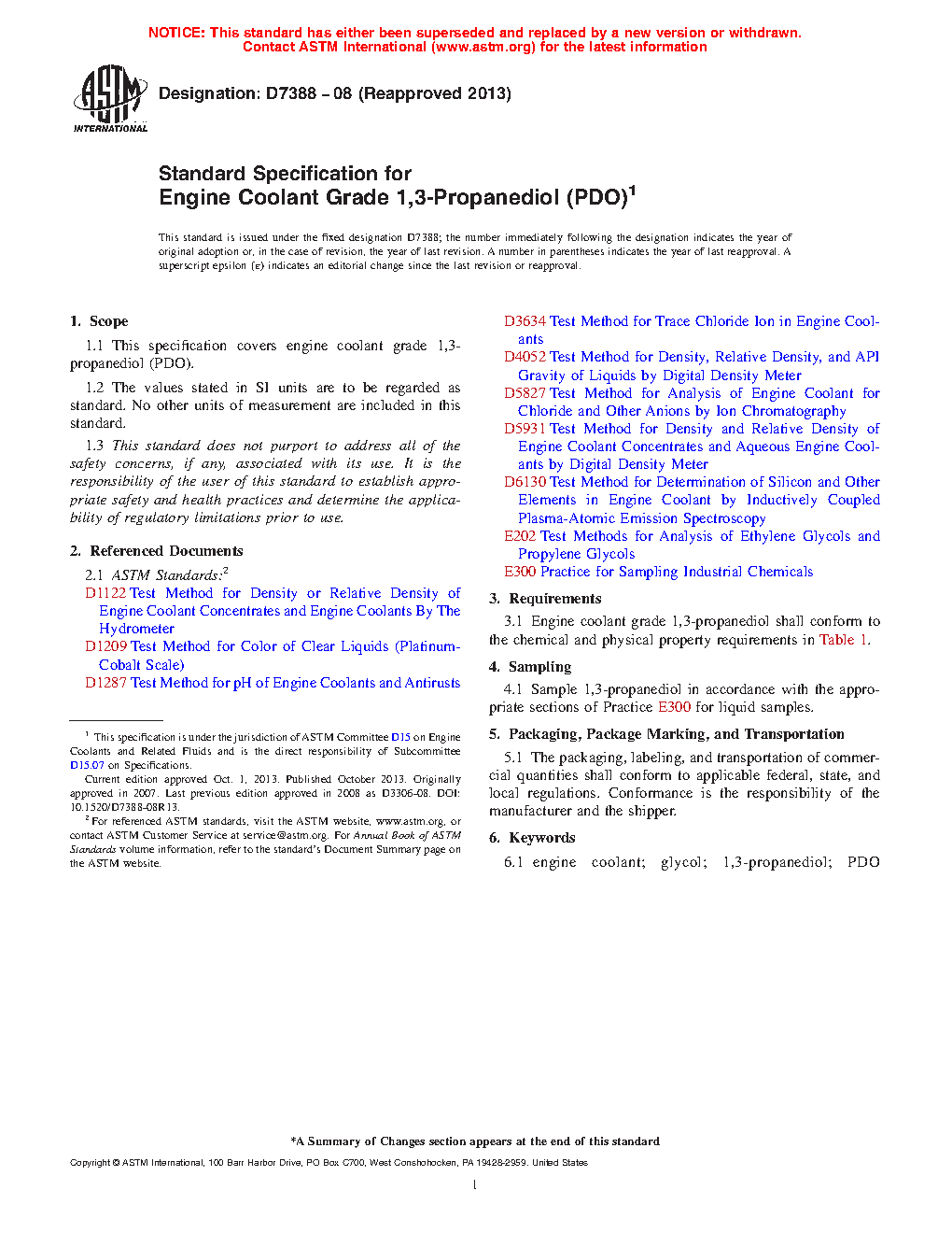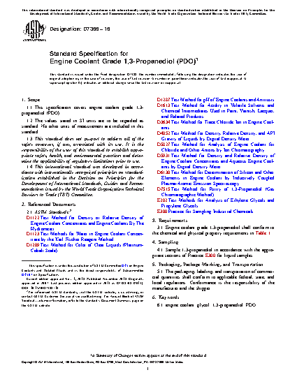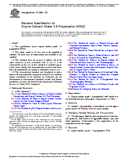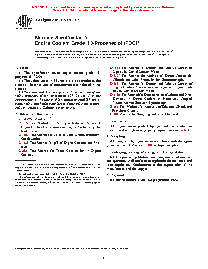 1.1 This specification covers engine coolant grade 1,3-propanediol (PDO).