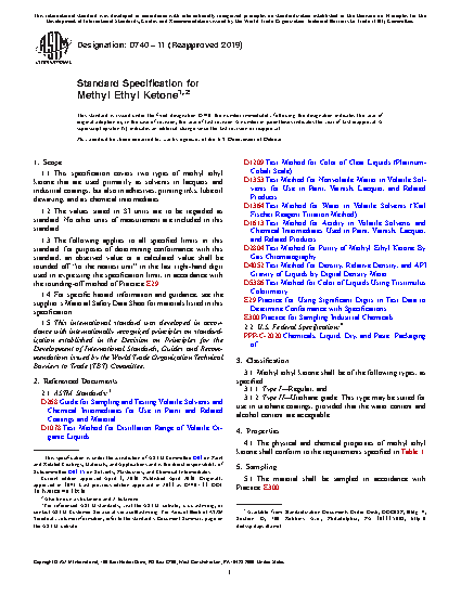 1.1 This specification covers two types of methyl ethyl ketone that are used primarily as solvents in lacquers and industrial coatings, but also in adhesives, printing inks, lube oil dewaxing, and as chemical intermediates.