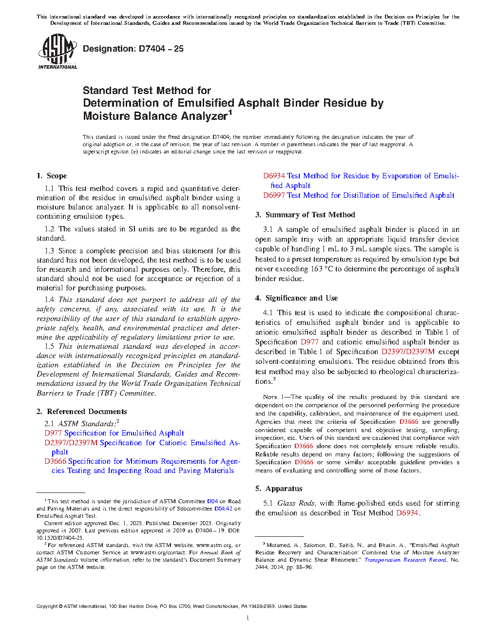 4.1 This test is used to indicate the compositional characteristics of emulsified asphalt and is applicable to anionic emulsified asphalts as described in Table 1 of Specification D977 and cationic emulsified asphalt as described in Table 1 of Specification D2397/D2397M except solvent-containing emulsions. The residue obtained from this test method may also be subjected to rheological characterizations.