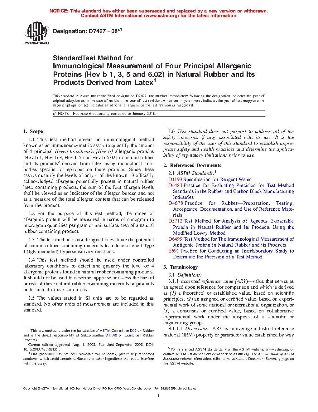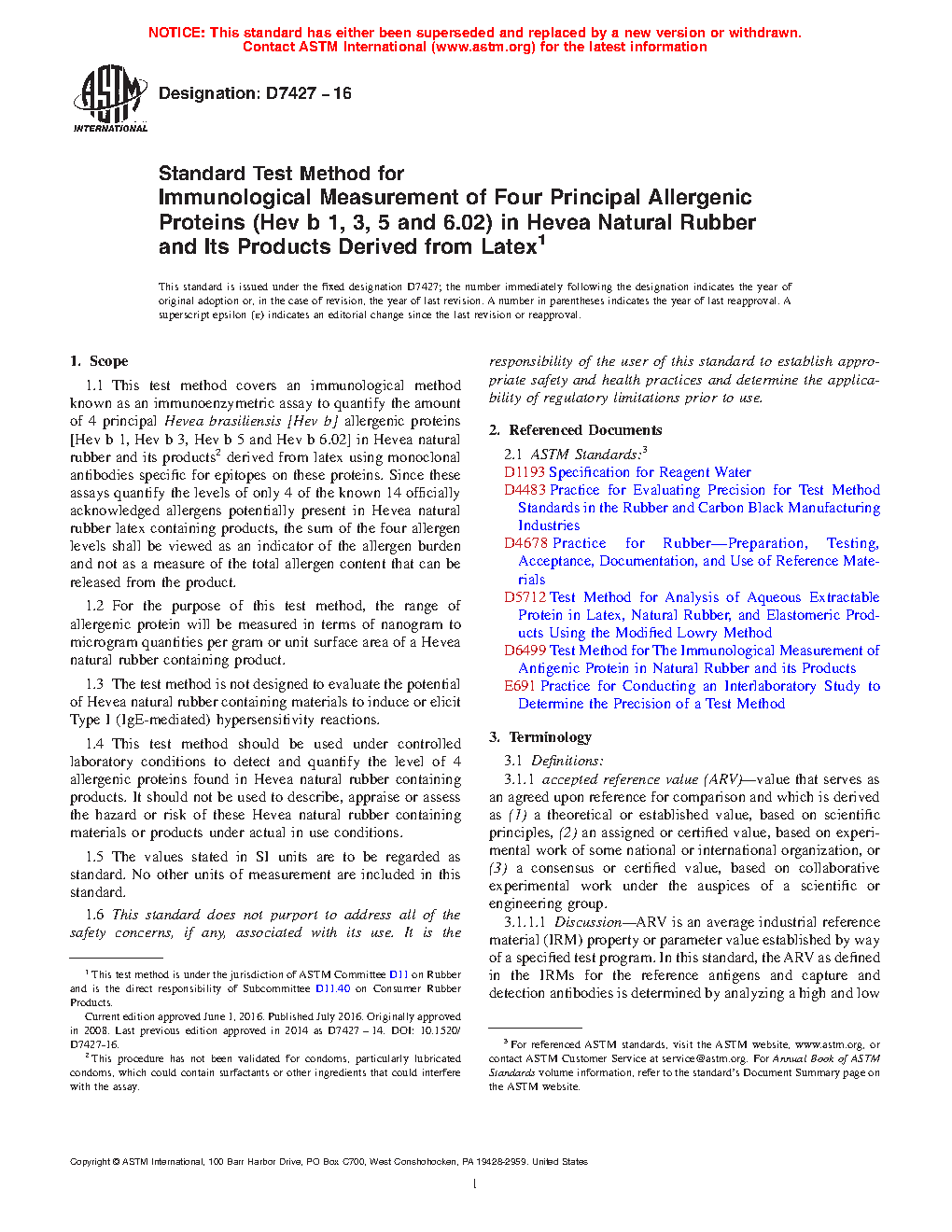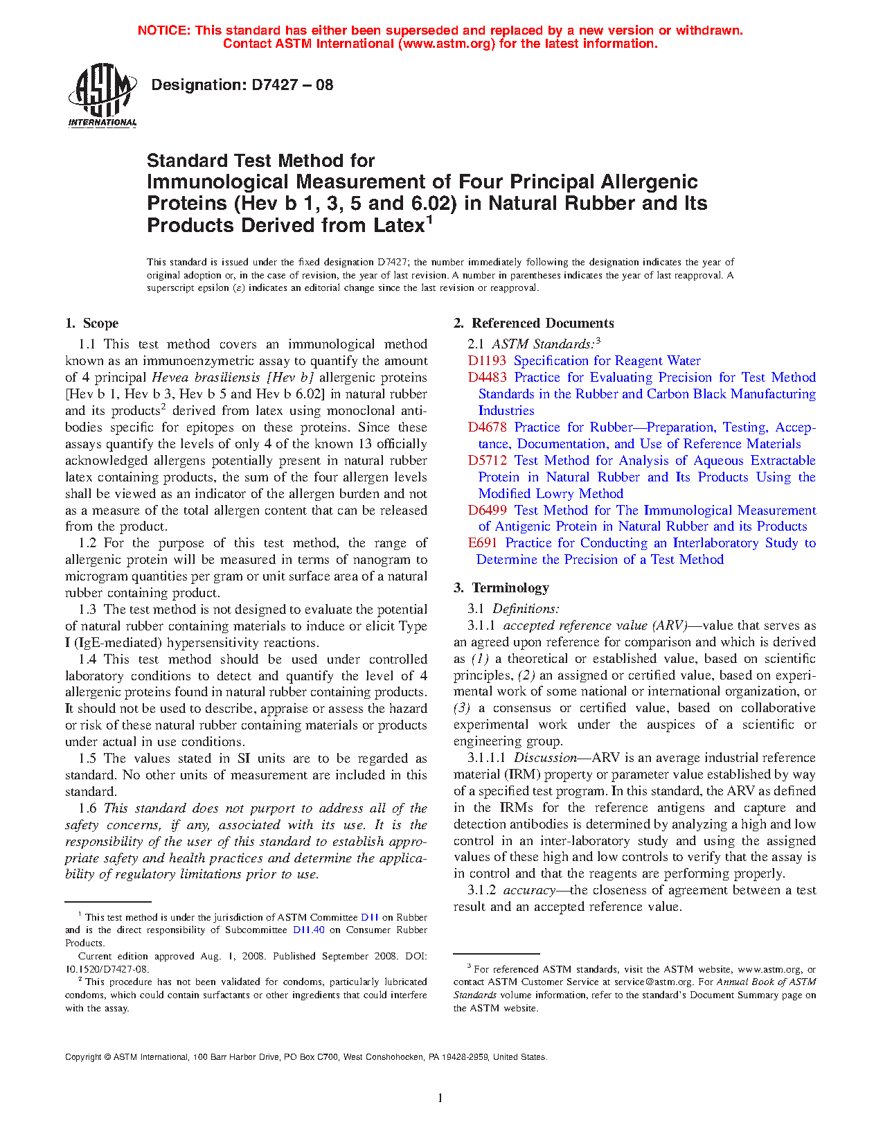 1.3 The test method is not designed to evaluate the potential of Hevea natural rubber containing materials to induce or elicit Type I (IgE-mediated) hypersensitivity reactions.