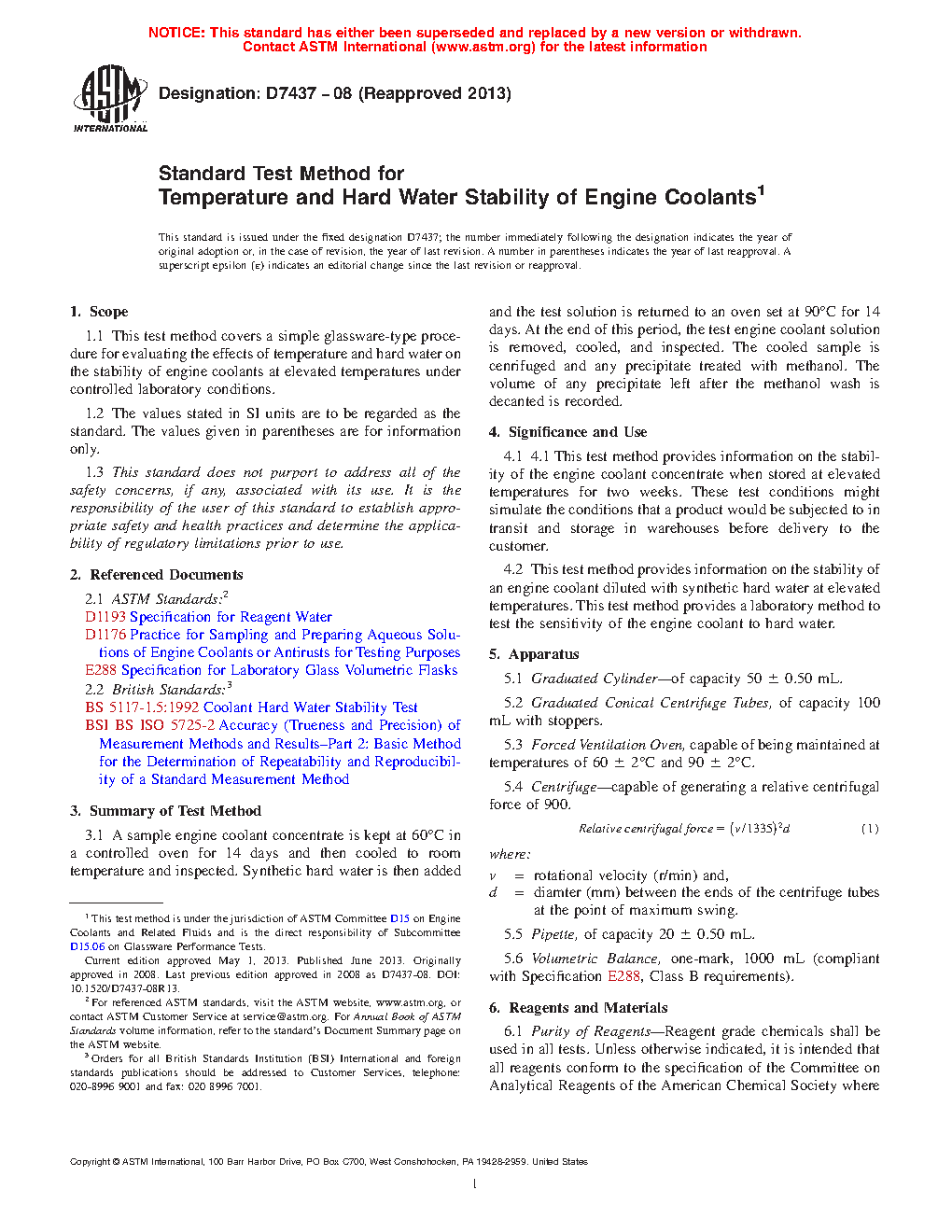 4.1 4.1 This test method provides information on the stability of the engine coolant concentrate when stored at elevated temperatures for two weeks. These test conditions might simulate the conditions that a product would be subjected to in transit and storage in warehouses before delivery to the customer.