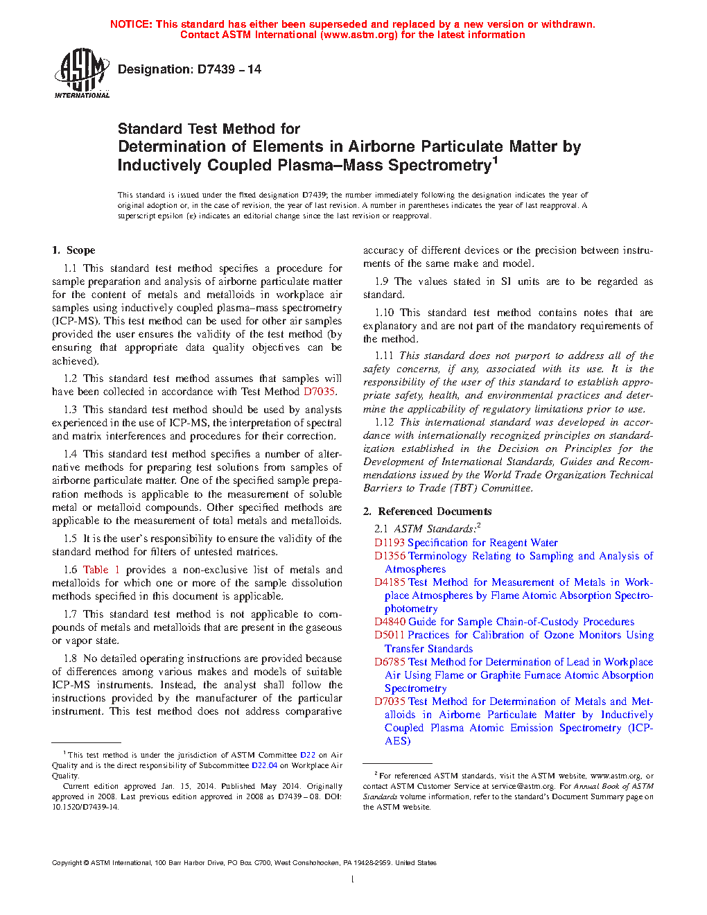 1.3 This standard test method should be used by analysts experienced in the use of ICP-MS, the interpretation of spectral and matrix interferences and procedures for their correction.